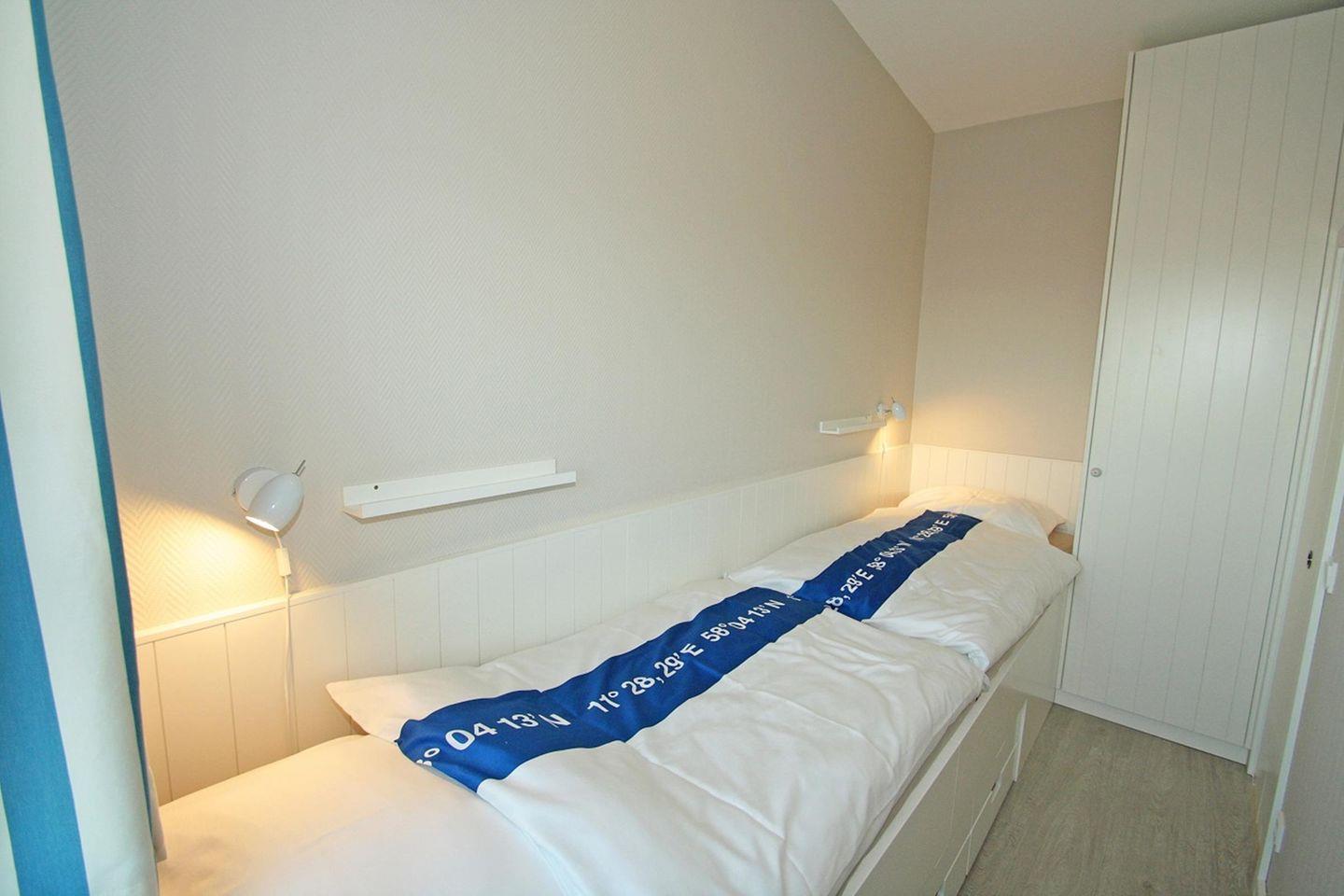Das sep. Kinderzimmer mit 2 Einzelbetten u. Kleiderschrank sowie das schicke Bad mit Duschkabine und WC liegen daneben. Tierhaltung nur auf Anfrage. Erstausstattung Bettwäsche und Handtücher incl.