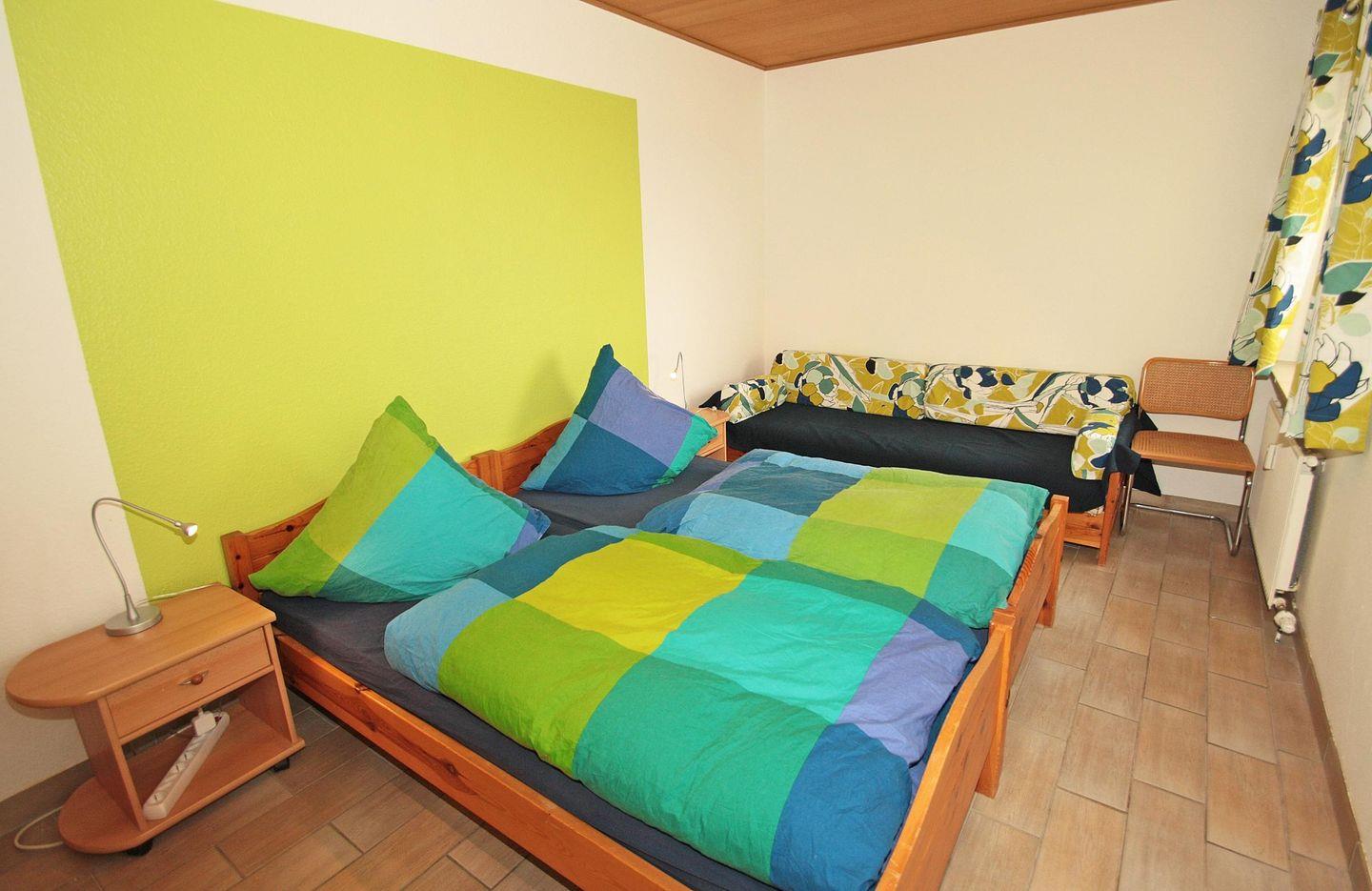 Das sep. Schlafzimmer verügt über ein Ehebett.