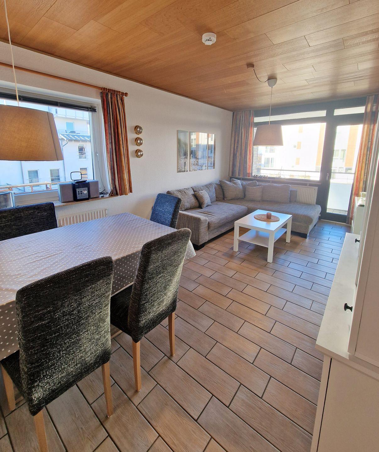 Vom Wohnzimmer aus haben Sie Teilblick auf die Ostsee. Der Eßplatz befindet sich am Fenster, welches zur Westseite ausgerichtet ist.