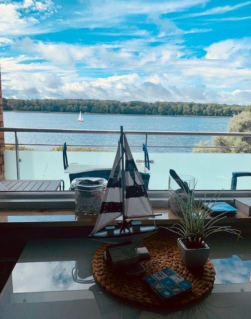 Modernes Apartment mit maritimem Flair, Südbalkon und Blick auf den Binnensee, nur 100 m vom Ostseestrand entfernt.