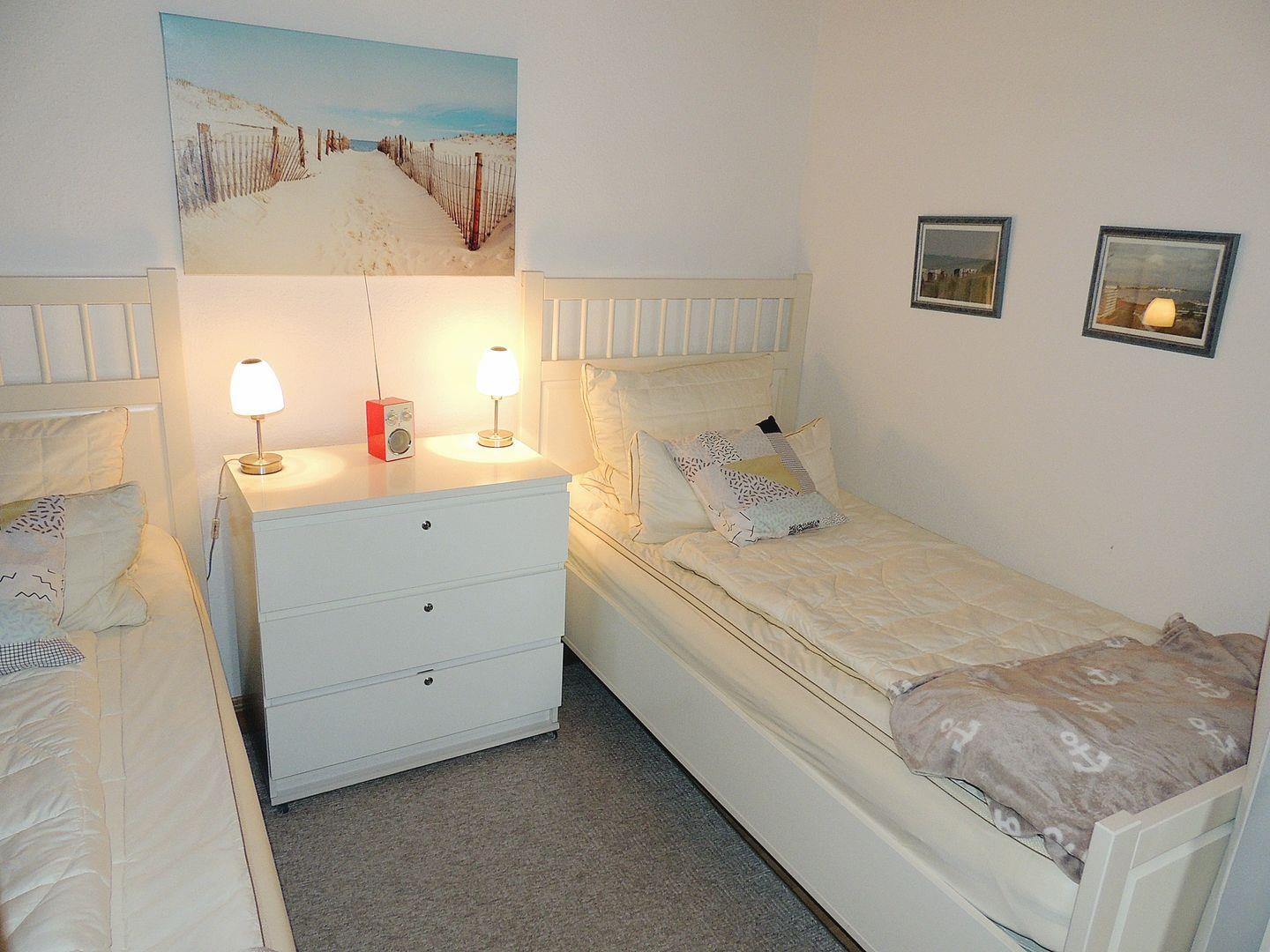 Das separate Kinderzimmer ist ebenfalls mit 2 gemütlichen Einzelbetten und zusätzlich mit kleinem Flat-TV ausgestattet. Auch hier bietet das Fenster einen Ausblick auf den Binnensee.