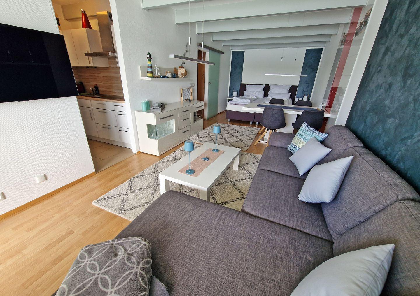 Frisch renoviertes Apartment im Dünenhof mit Südbalkon und herrlichem Binnenseeblick, nur 100 m vom Strand in Heiligenhafen entfernt.