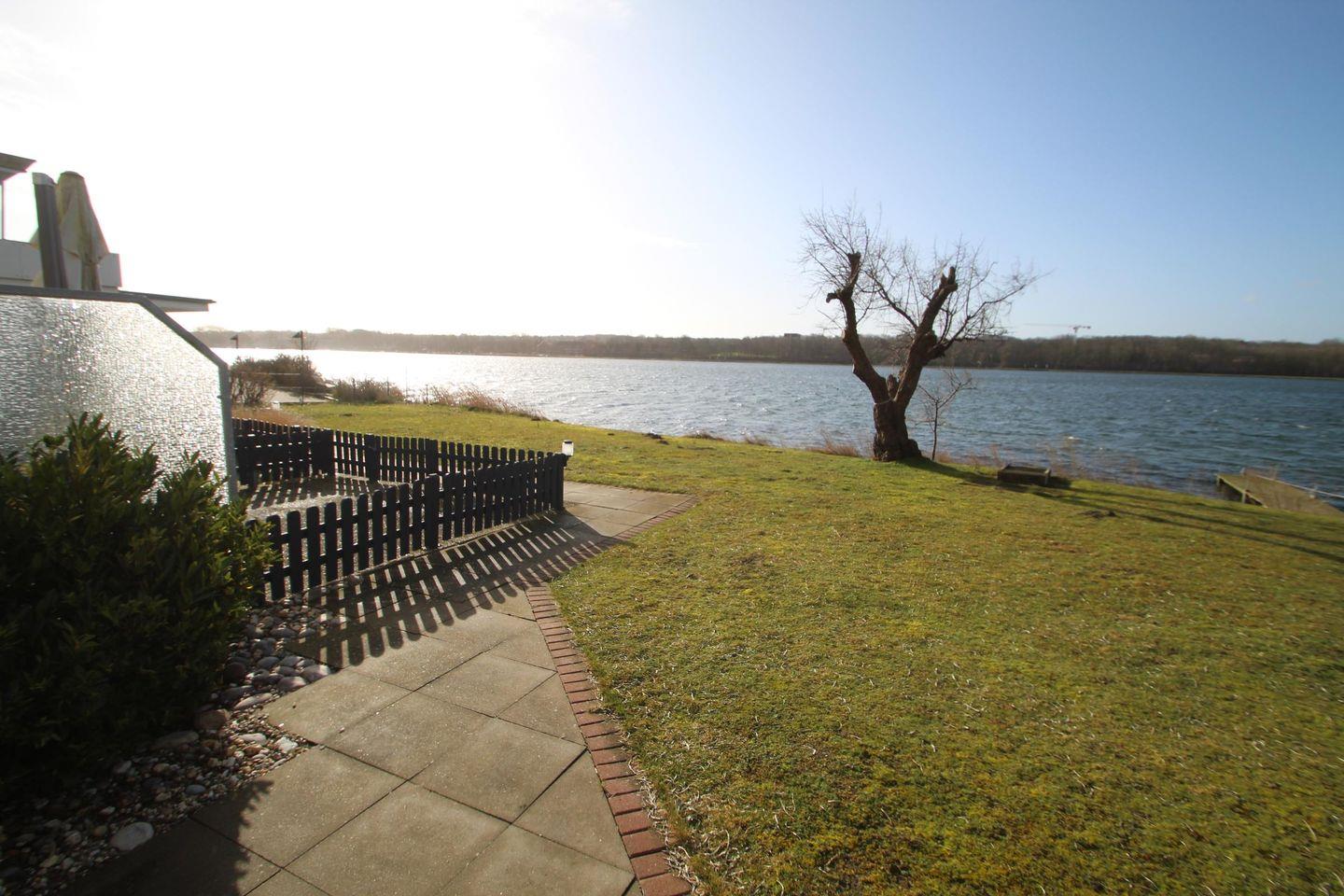 Auf der Terrasse genießen Sie den herrlichen Blick auf den See, der direkt hinter der Liegewiese mit gemeinschaftlich nutzbarem Kamingrill beginnt. Im Strandkorb sind Sie hier auch an windigen Tagen optimal geschützt. Sonnenschirm, Sonnenliegen, Tisch, Stühle und passende Auflagen komplettieren die Ausstattung.