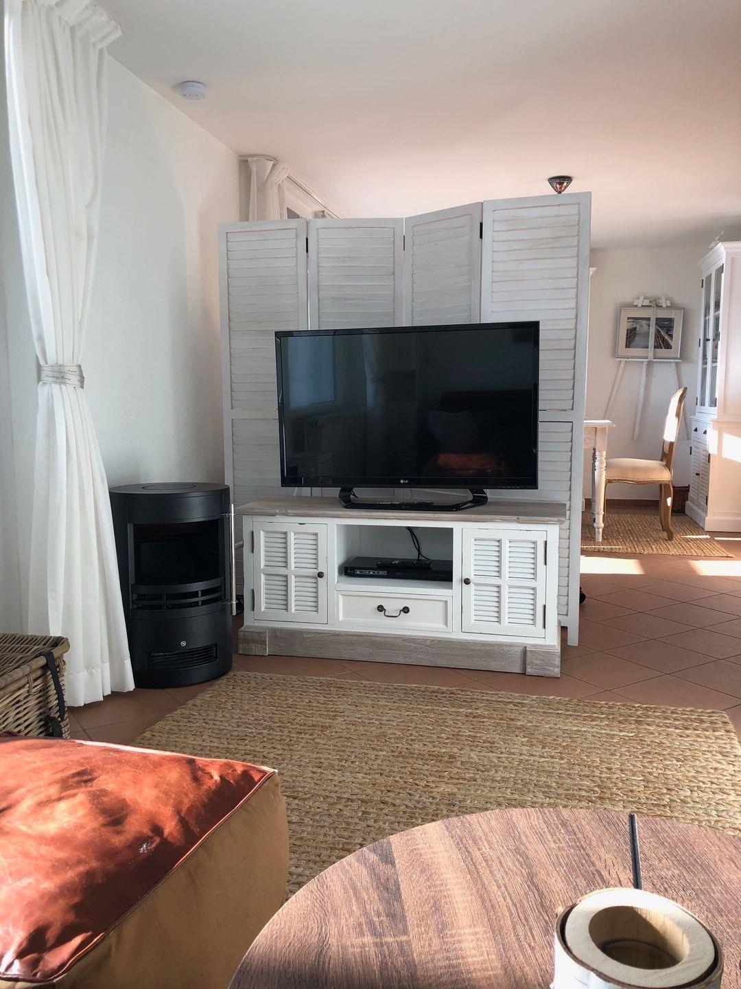 Im offenen Wohnzimmer mit Seeblick bietet eine hochwertige Eck-Couch viel Platz für kuschelige Abende. Ein großer LCD-TV, DVD-/ und BluRay-Player sowie ein Radio stehen Ihnen zur Unterhaltung zur Verfügung. Zusätzlich bietet die Wohnung ein kostenloses W-Lan-Netz.