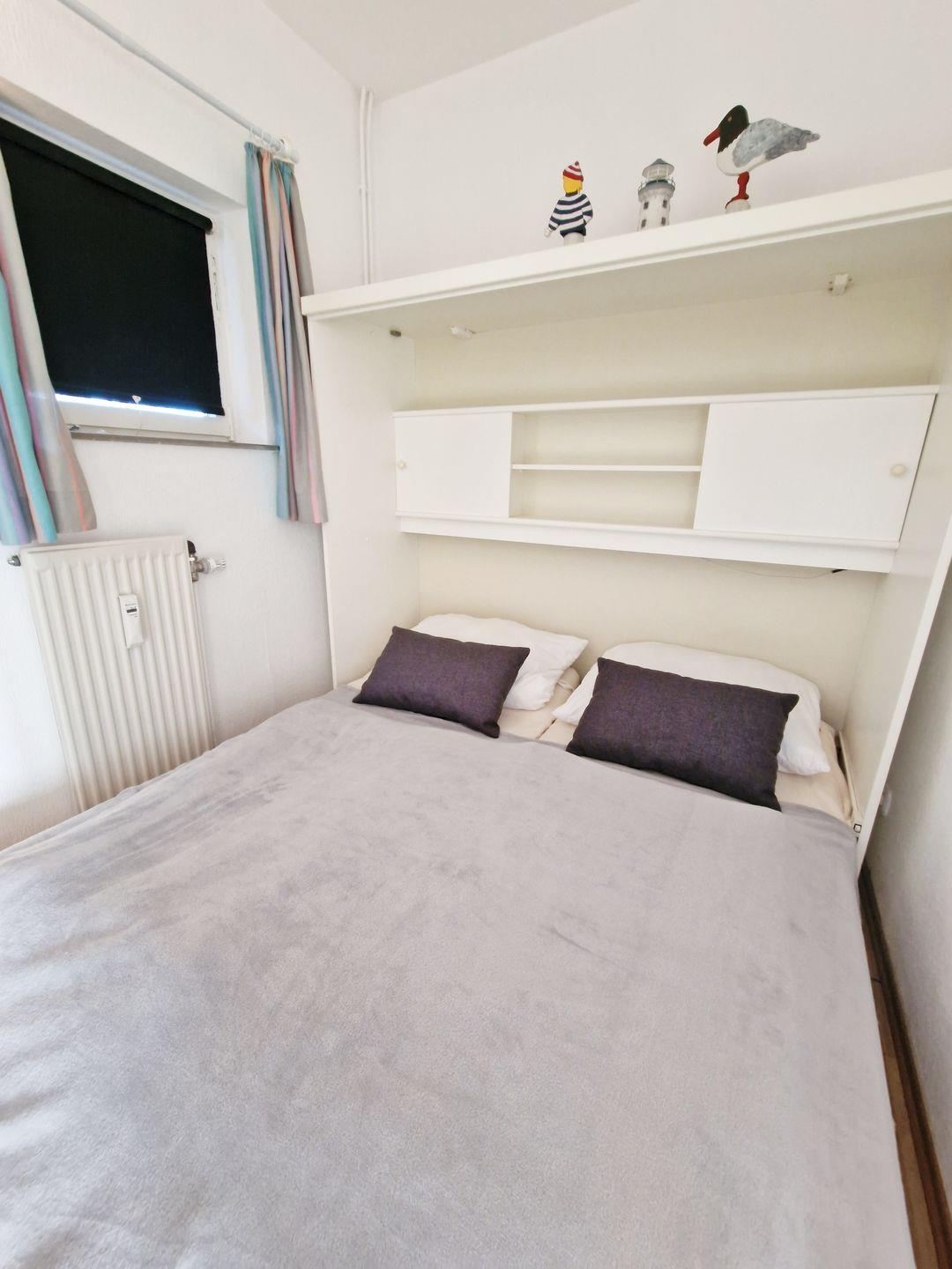 Im Eingangsbereich befindet sich ein Doppel-Schrankbett (2*80*200 cm), sowie das Duschbad/WC.