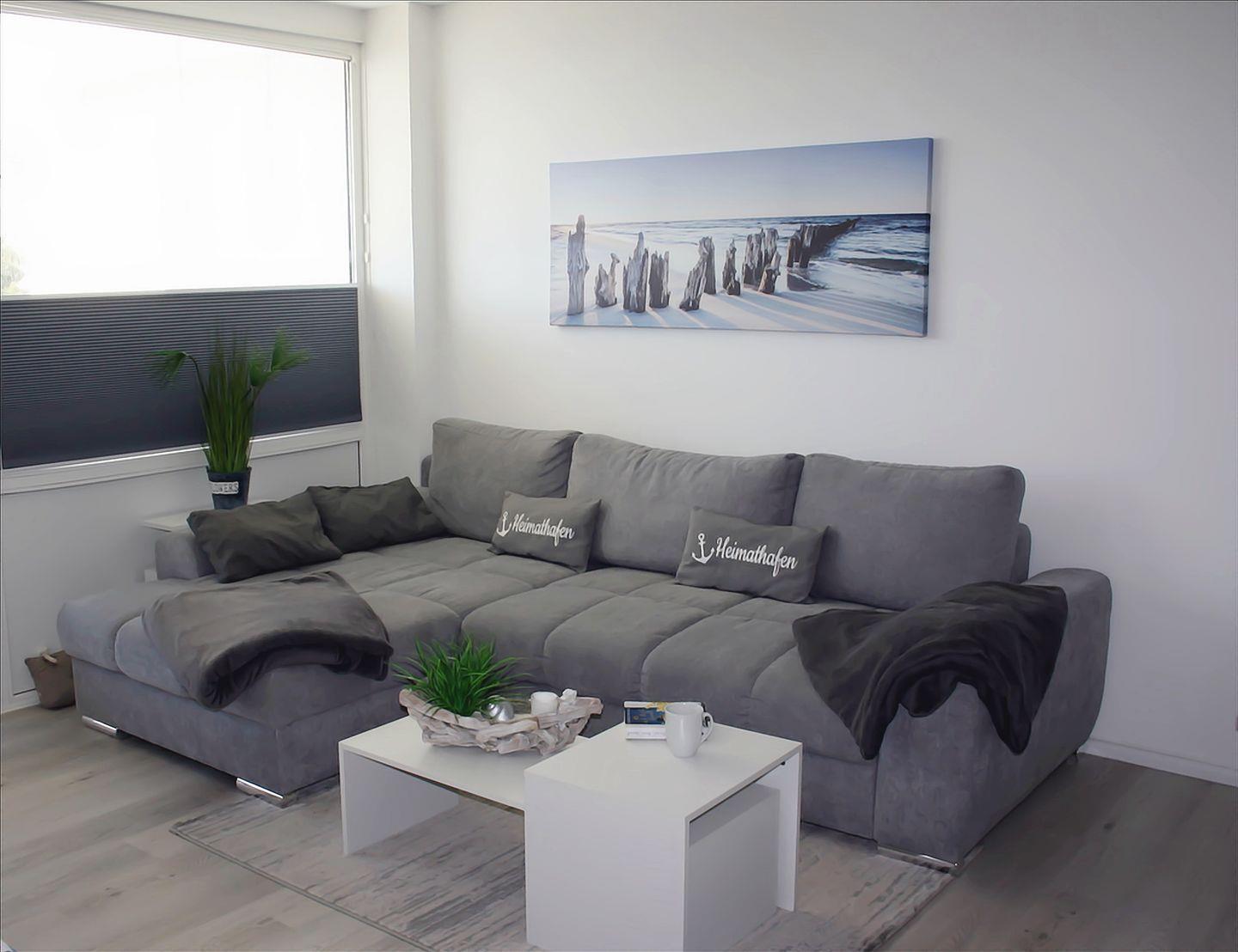Modernes, renoviertes Apartment in Heiligenhafen mit großem Balkon und Seeblick, ideal für einen erholsamen Urlaub.