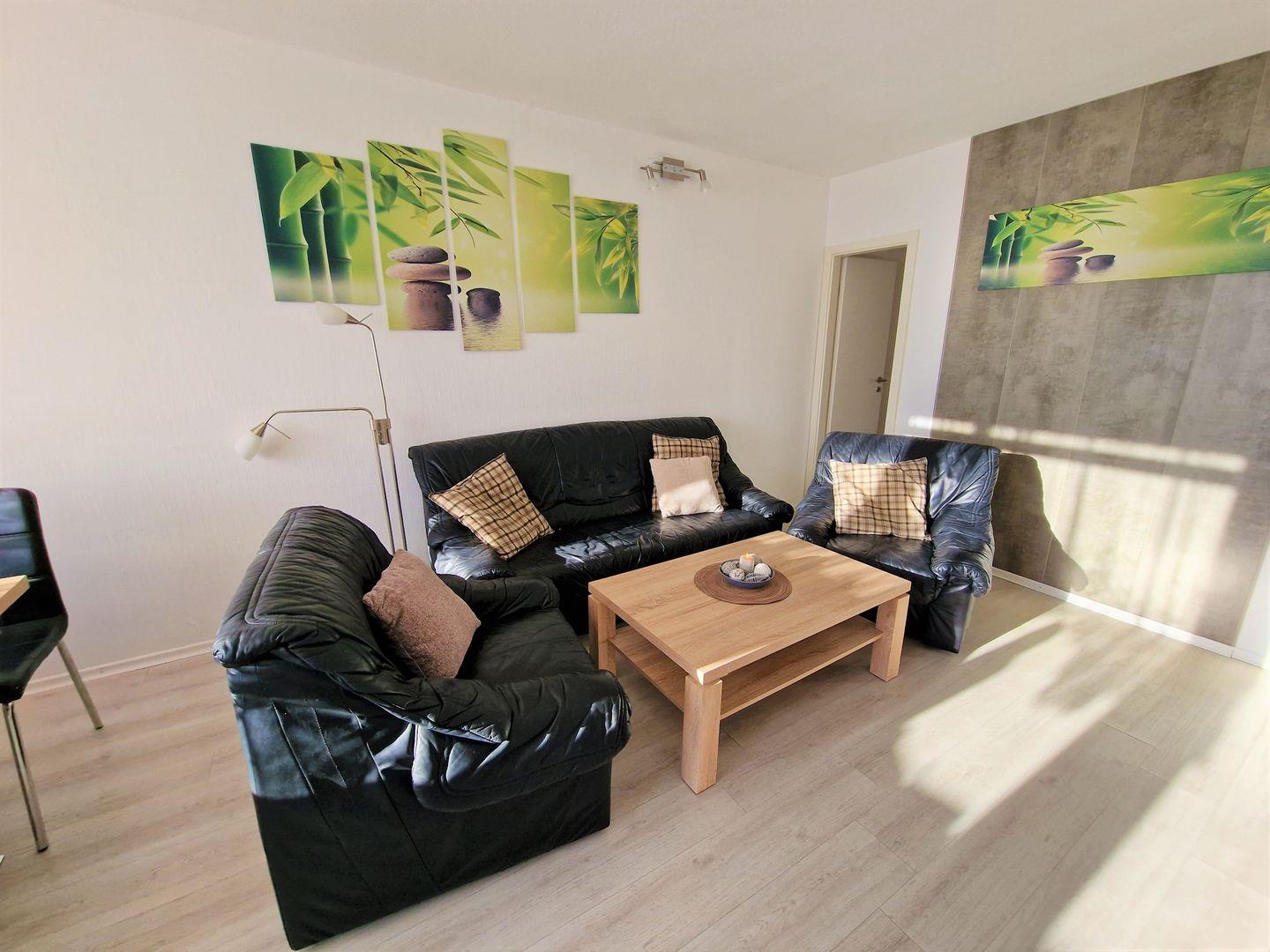 Sonnige und gepflegte Ferienwohnung, komplett mit hellem PVC-Laminat ausgelegt, in der 1. Etage mit Blick ins Grüne.