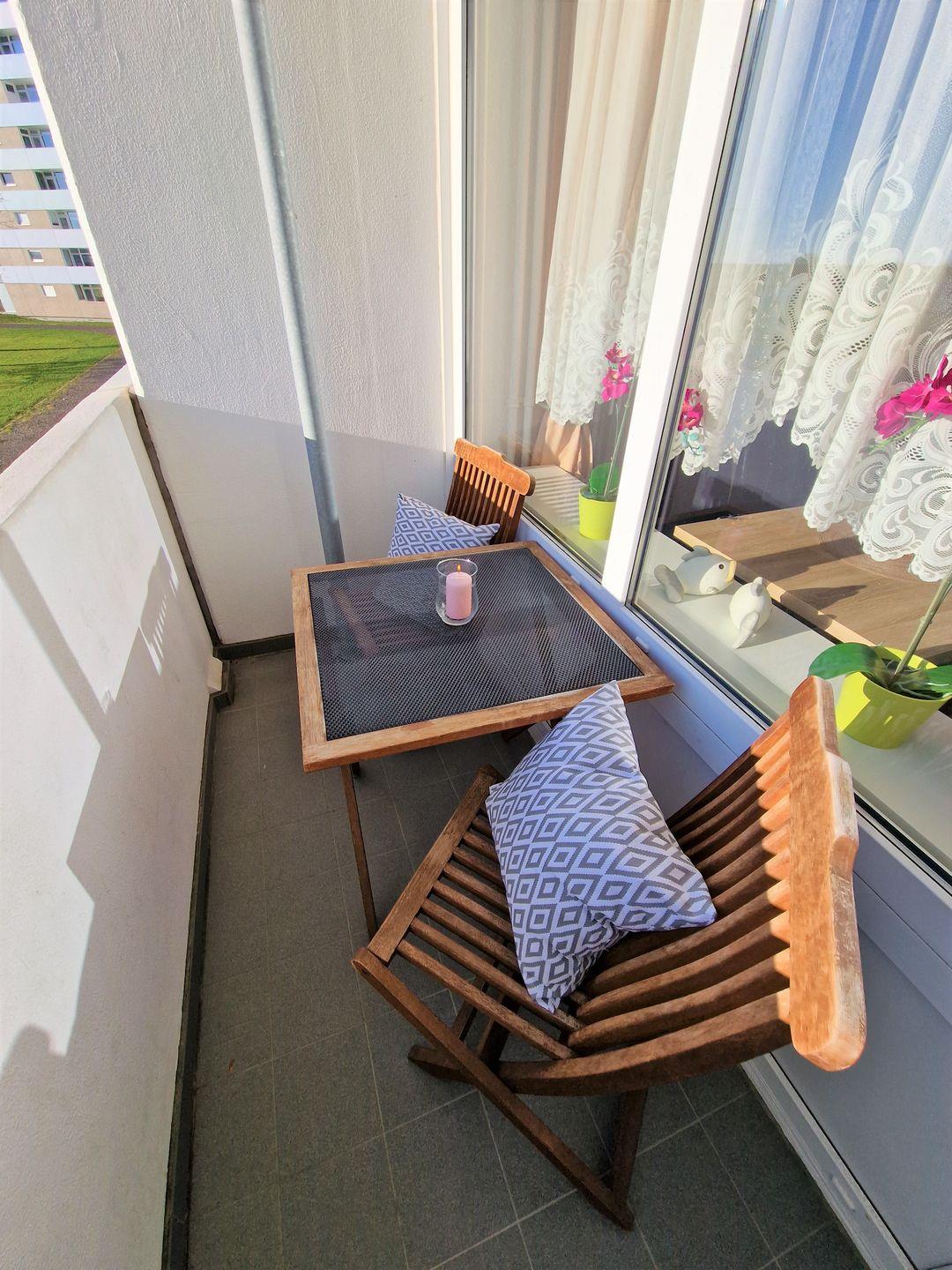 Helle Ferienwohnung in Heiligenhafen mit Balkon, moderner Ausstattung und Blick ins Grüne.
