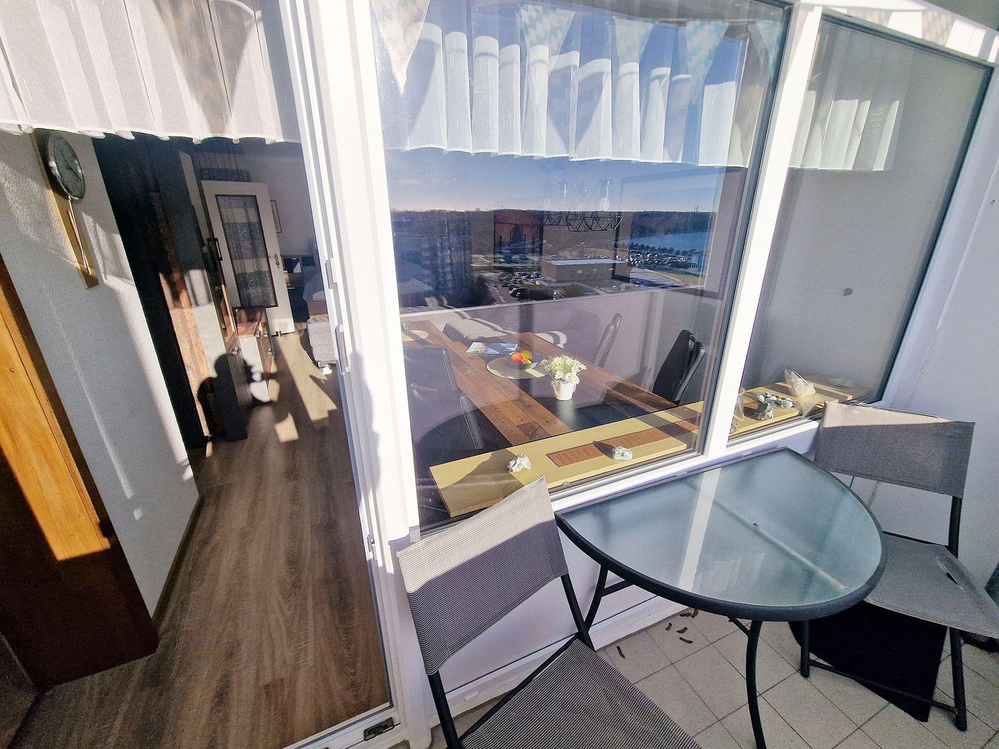 Sonnige Ferienwohnung mit Balkon, Seeblick und Nähe zum Strand in Heiligenhafen.