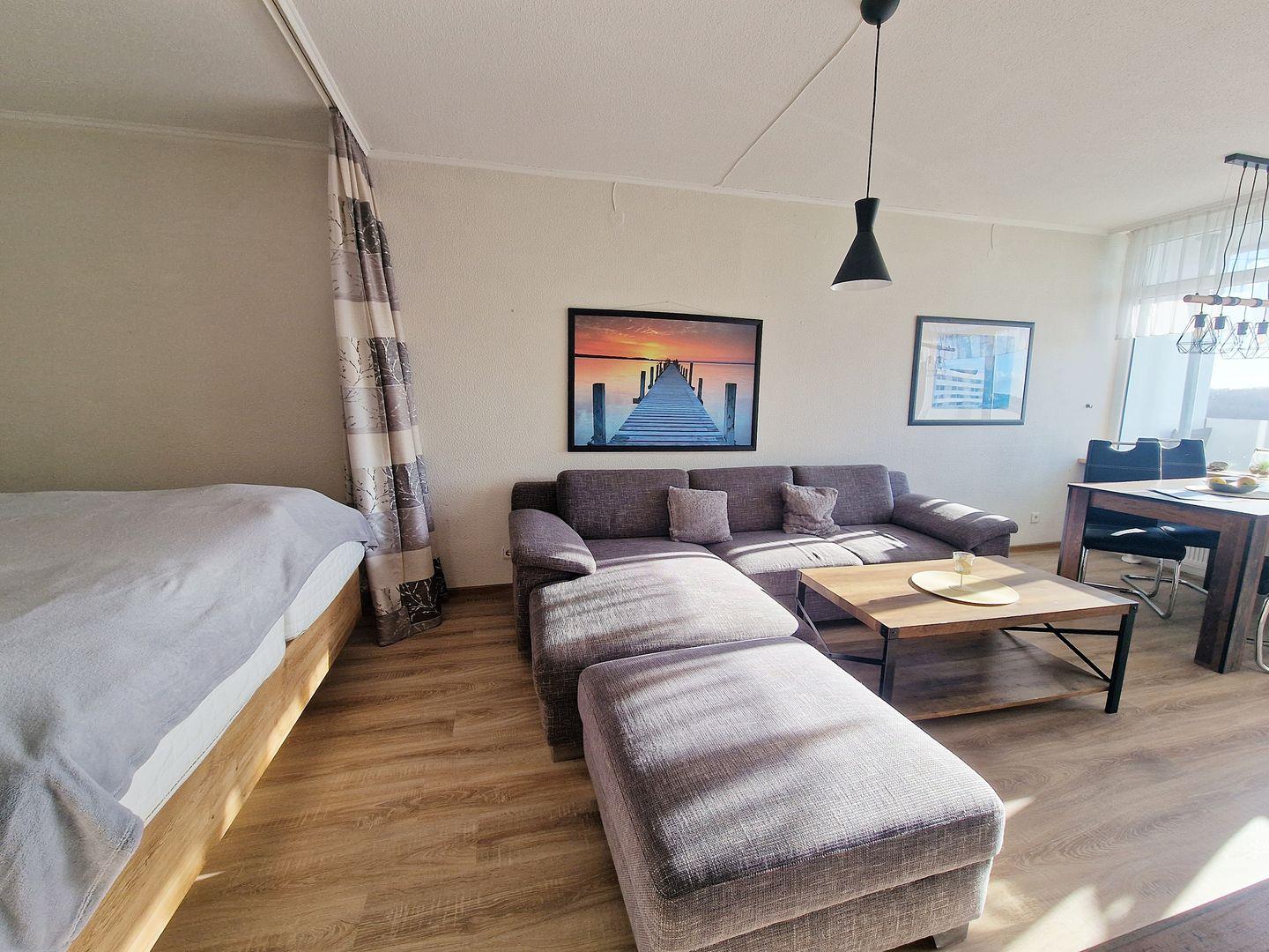 Sonnige, harmonisch eingerichtete Ferienwohnung mit PVC in Holzoptik und viel Liebe zum Detail in der 9. Etage.