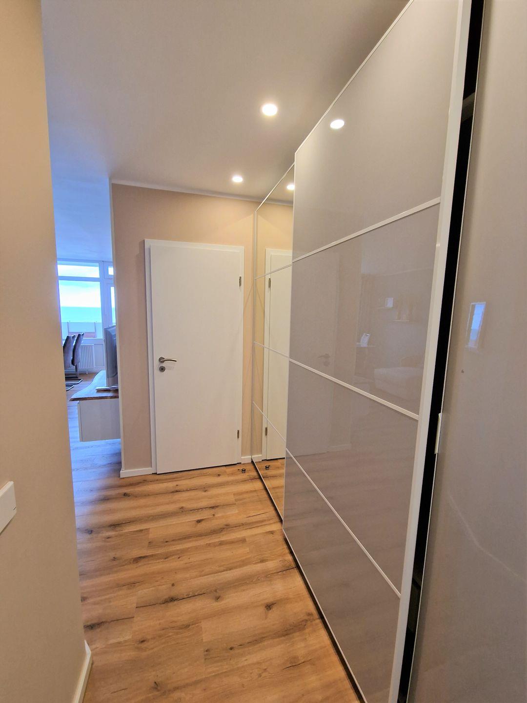 „Wow – so ein Ausblick!“ – Schon beim Eintreten spürt man, wie dieses Apartment modern und gleichzeitig einladend gestaltet ist. Vom Wohnbereich und dem kleinen Balkon zur Nordseite aus eröffnet sich ein klarer, beruhigender Ausblick – das Highlight der Wohnung.