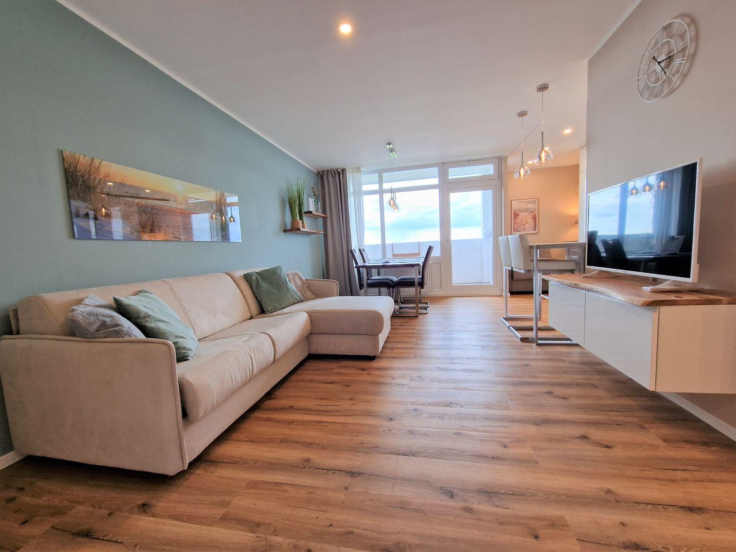 Modernes Nichtraucher-Apartment mit traumhaftem Ostseeblick und Balkon, nur 400 m vom Strand in Heiligenhafen entfernt.