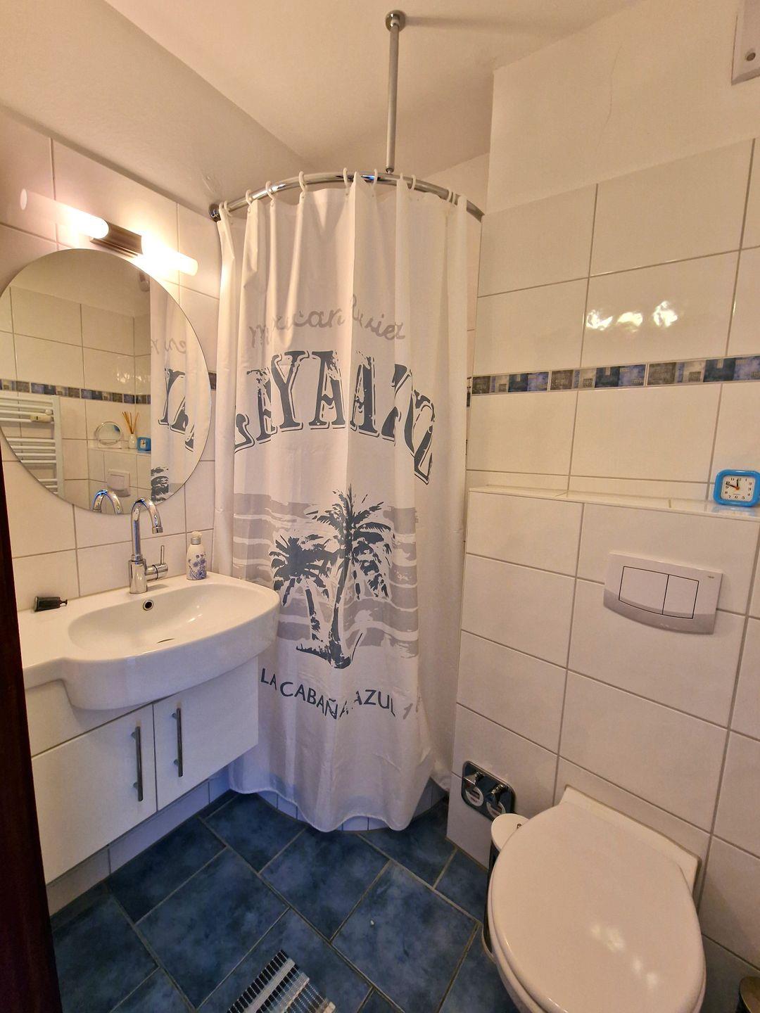 Das Badezimmer ist ausgestattet mit Dusche und WC.