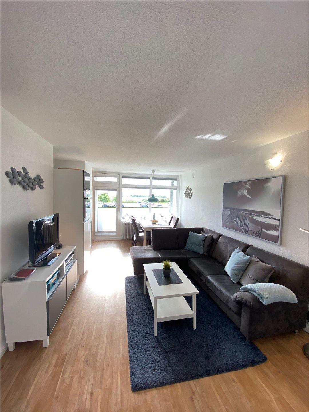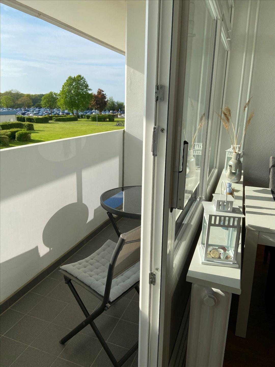 Gemütliche Ferienwohnung mit Balkon und Meerblick im Ferienpark Heiligenhafen, ideal für einen entspannten Urlaub.
