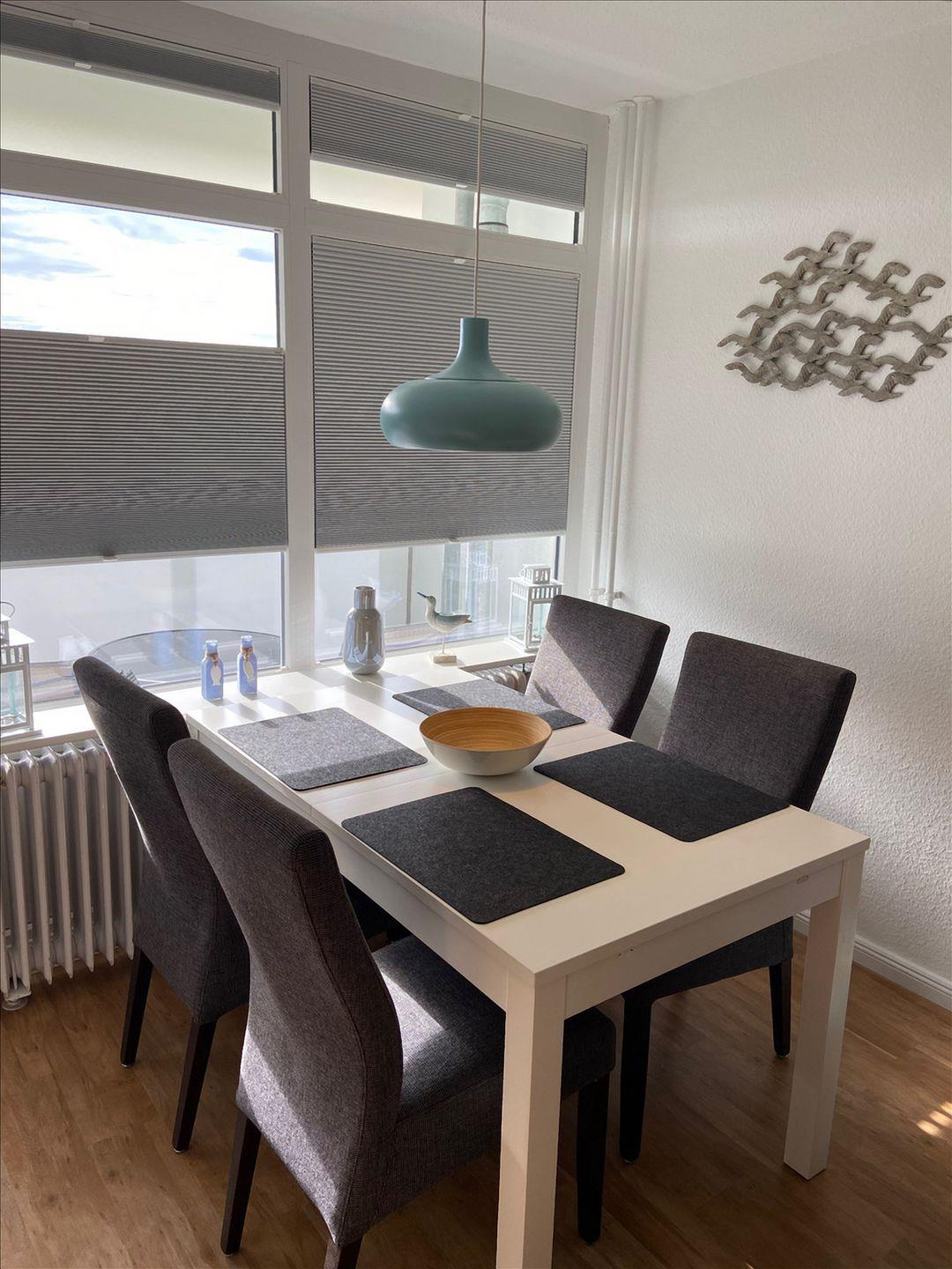 Freundlich eingerichtete Ferienwohnung in der 1. Etage mit Balkon zur Westseite mit Blick Richtung Naturschutzgebiet und Meer.
