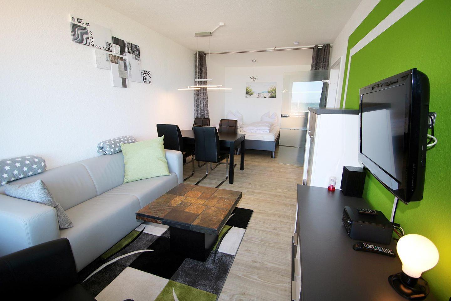 Modern eingerichtete Ferienwohnung mit Ostseeblick und Balkon in Heiligenhafen.