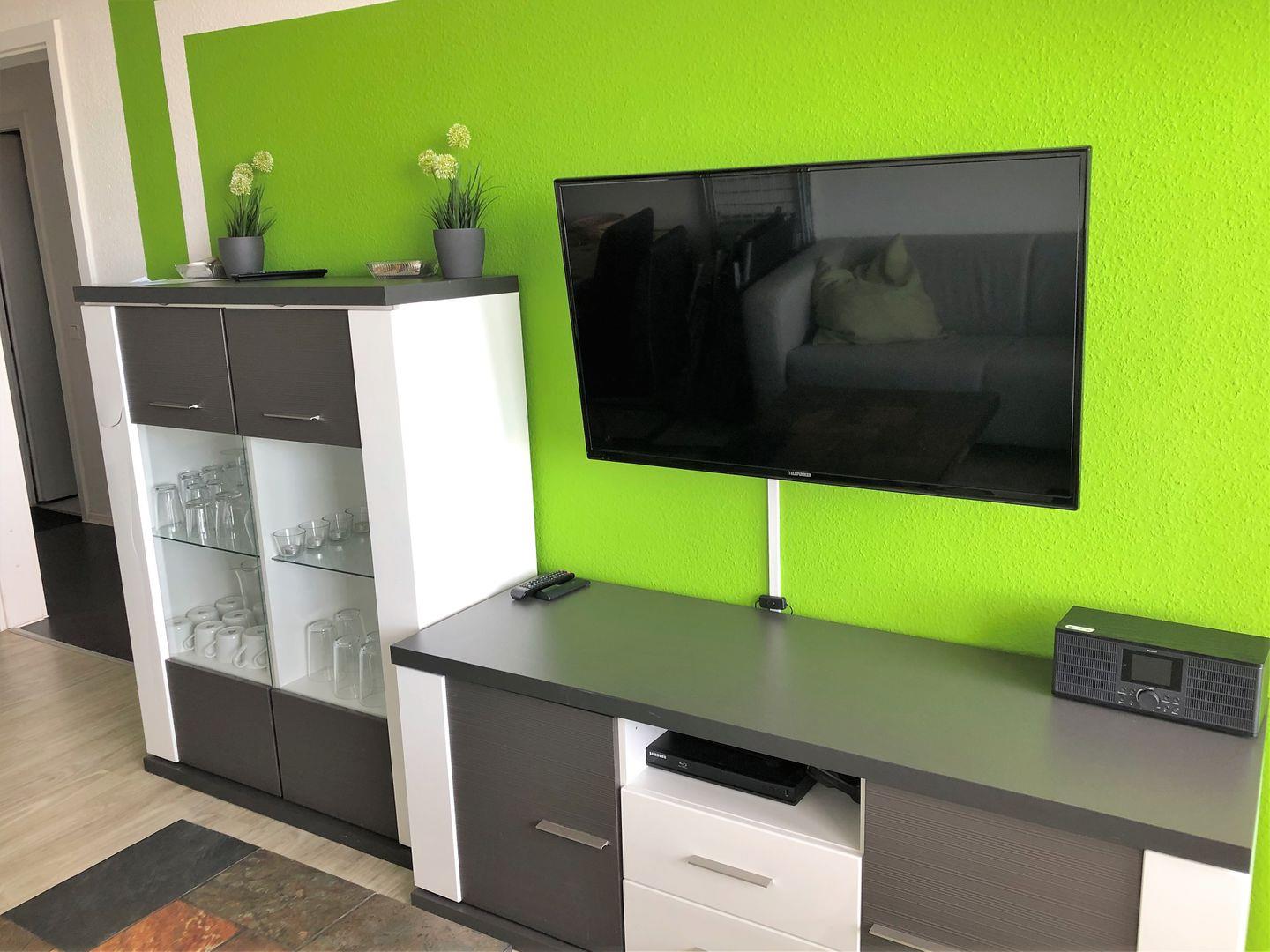 Im Kinderzimmer befindet sich ebenfalls ein Doppelbett sowie ein weiterer 32 Zoll Flachbild-TV.