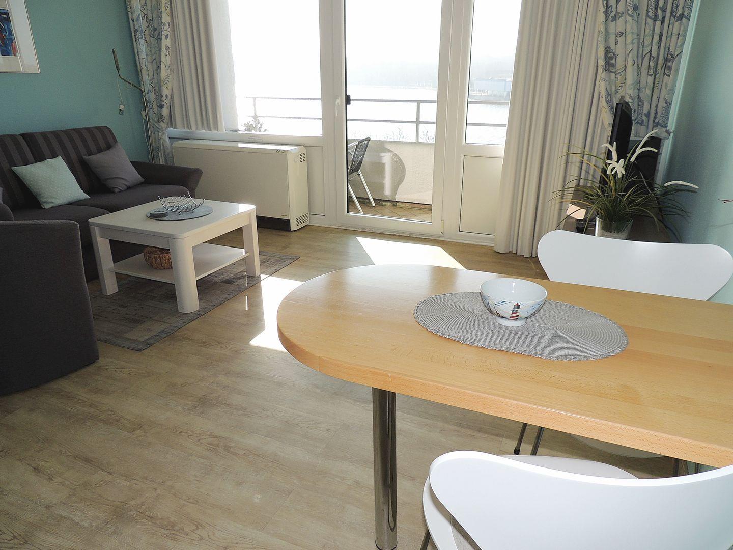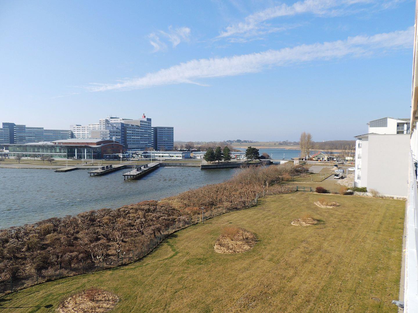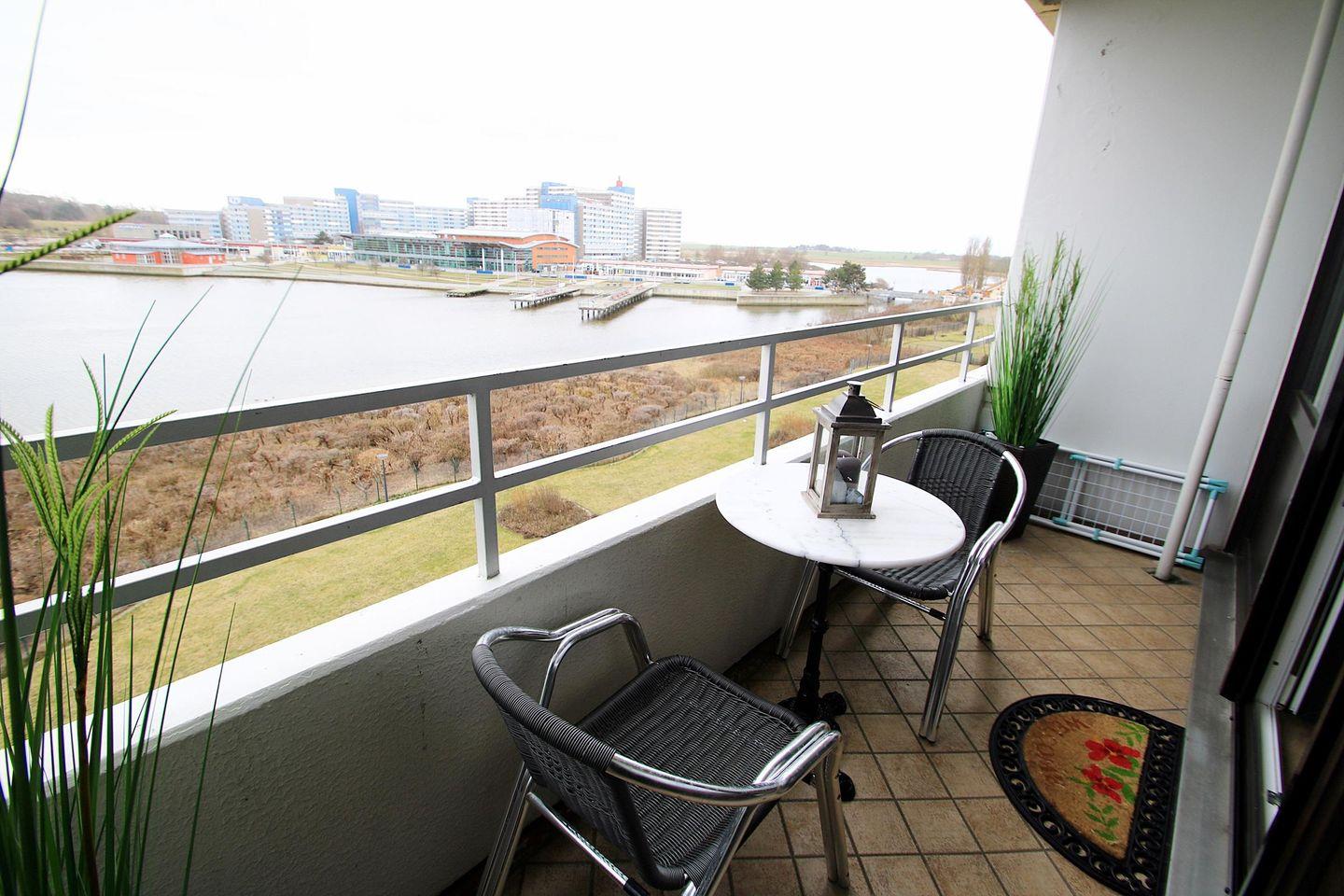 Helle Ferienwohnung mit Balkon und Blick auf den Binnensee in Heiligenhafen, modern renoviert und mit eigenem Parkplatz.