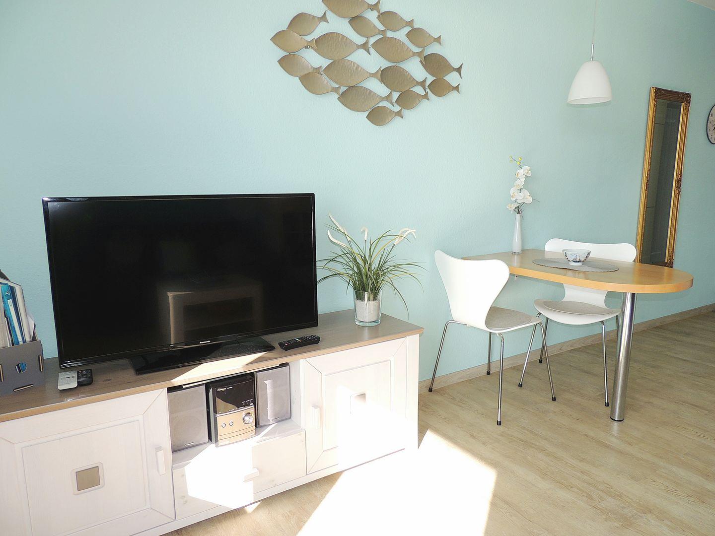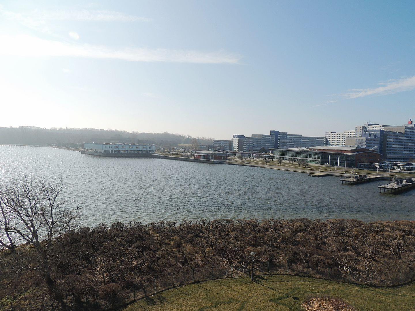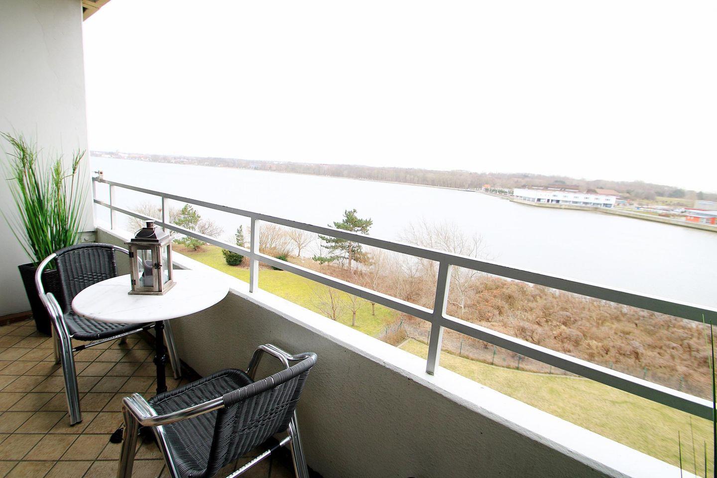Helle Ferienwohnung mit Balkon und Blick auf den Binnensee in Heiligenhafen, modern renoviert und mit eigenem Parkplatz.