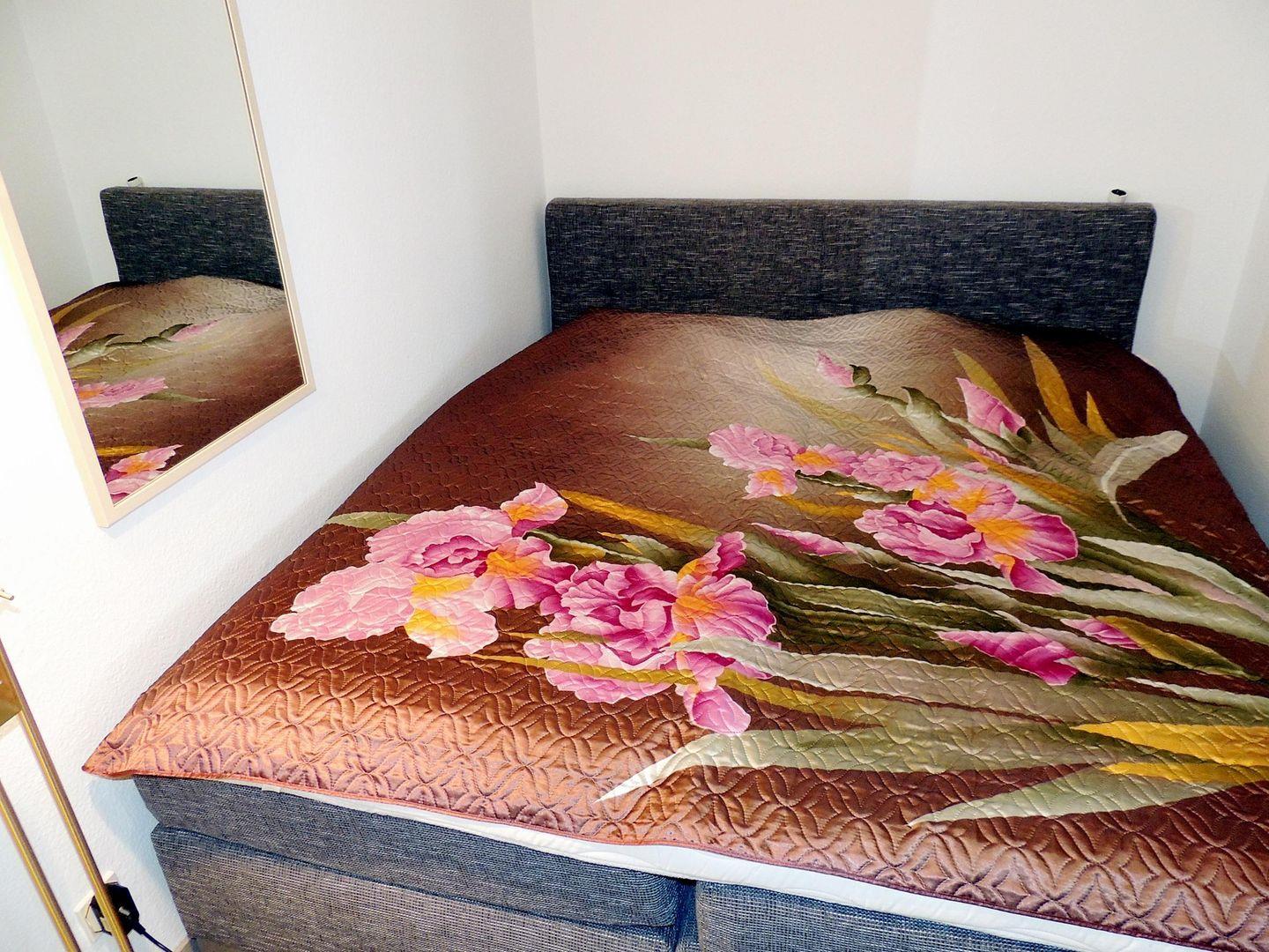 Das neue Boxspringbett (1,80 x 2,0 m ), in der duch einen Vorhang abgetrennten Schlafnische, bietet tollen Schlafkomfort und lädt zum Träumen ein.