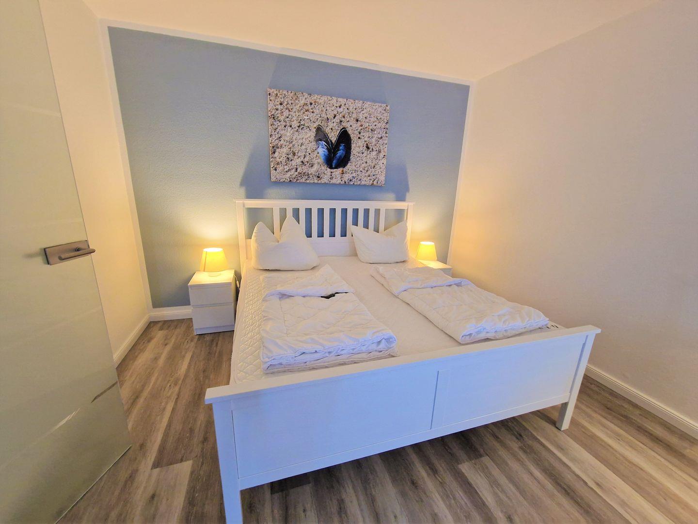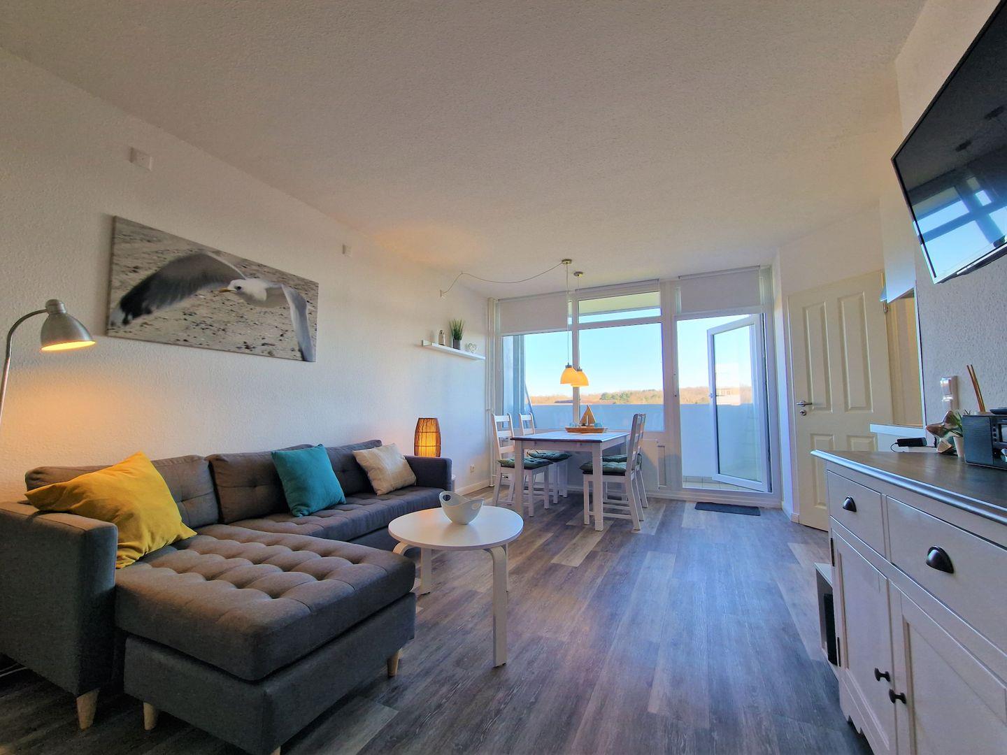 Hell und modern eingerichtet Wohnung in der 3.Etage mit Blick auf den Binnensee und die Salzwiesen im Süden.