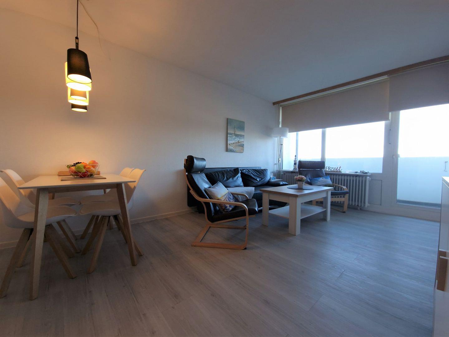 Helle Ferienwohnung mit Balkon, Blick auf den Binnensee und moderner Ausstattung in Heiligenhafen.