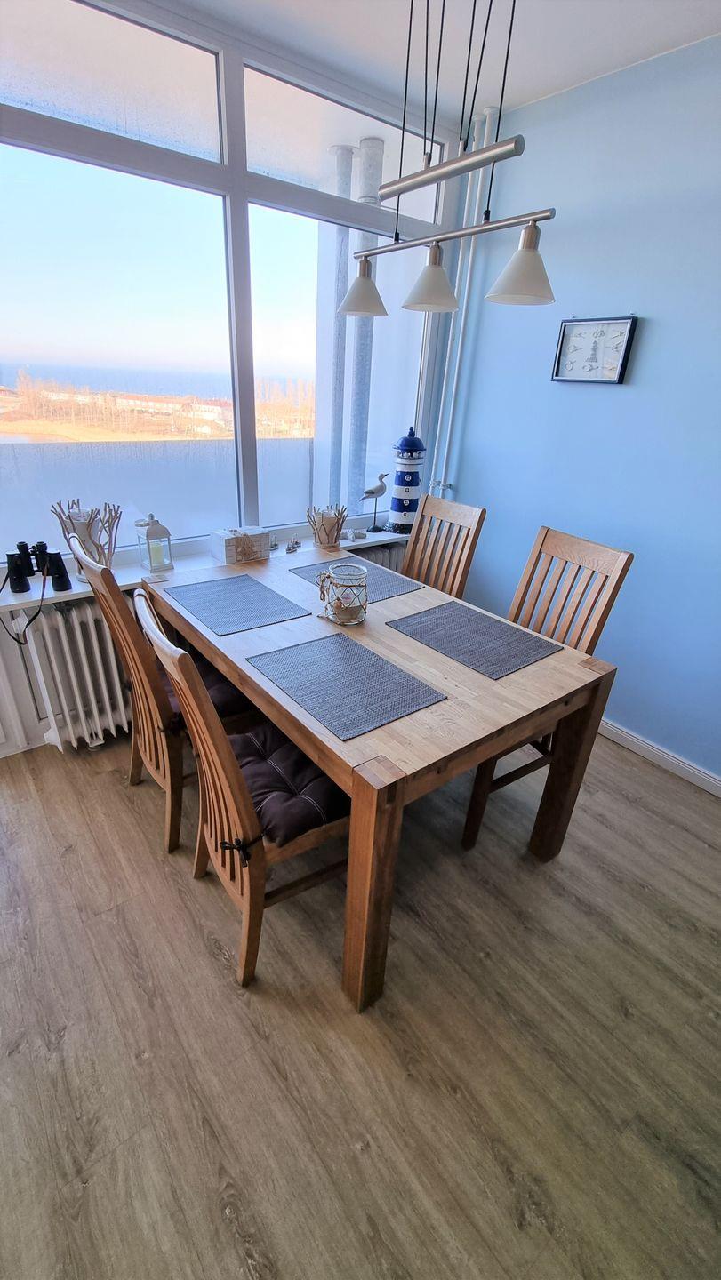 Diese moderne, helle und komfortabel ausgestattete Ferienwohnung befindet sich in der 7. Etage des Ferienparks und bietet einen wunderschönen Blick auf das weite Blau der Ostsee. Mit ihrer freundlichen Atmosphäre und der durchdachten Einrichtung ist sie der ideale Ort für einen entspannten Urlaub am Meer. Die Wohnung verfügt über einen Balkon mit Sitzgelegenheiten zur Ostseeseite, auf dem Sie den Blick auf das glitzernde Blau des Meeres genießen und den Tag entspannt ausklingen lassen können.