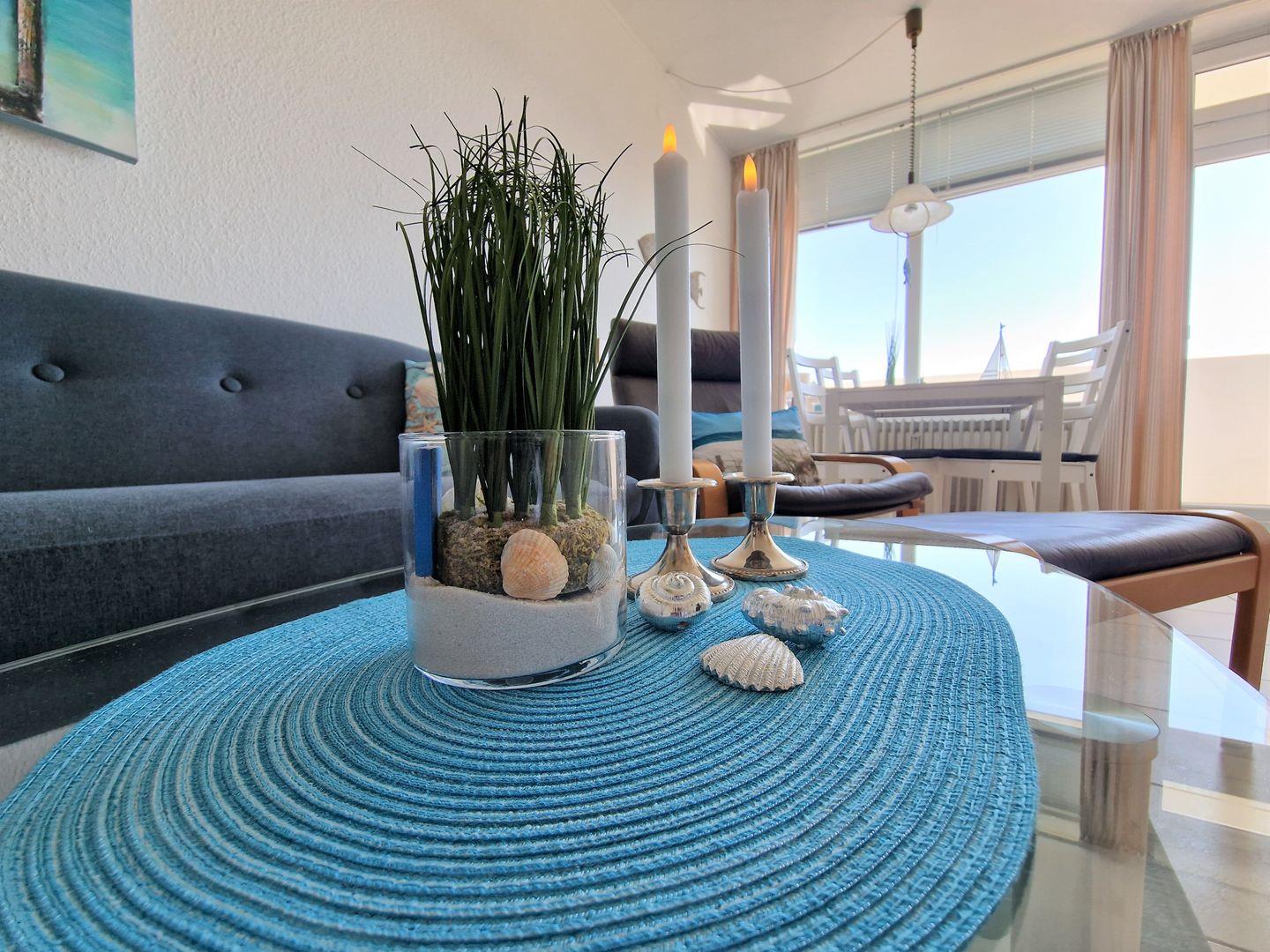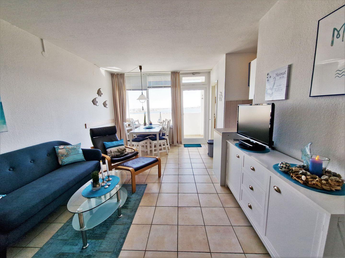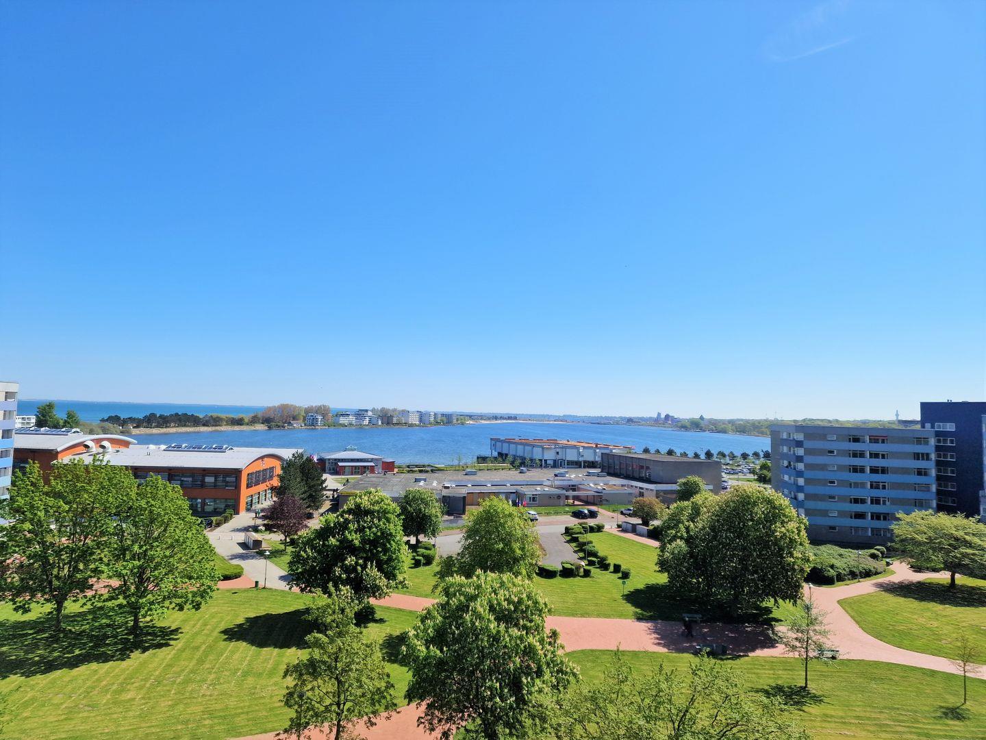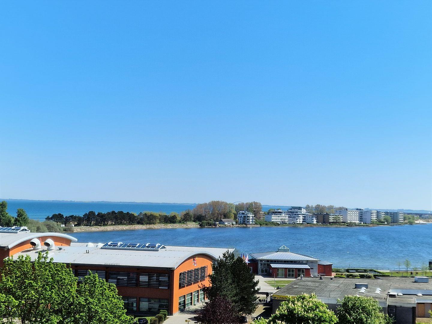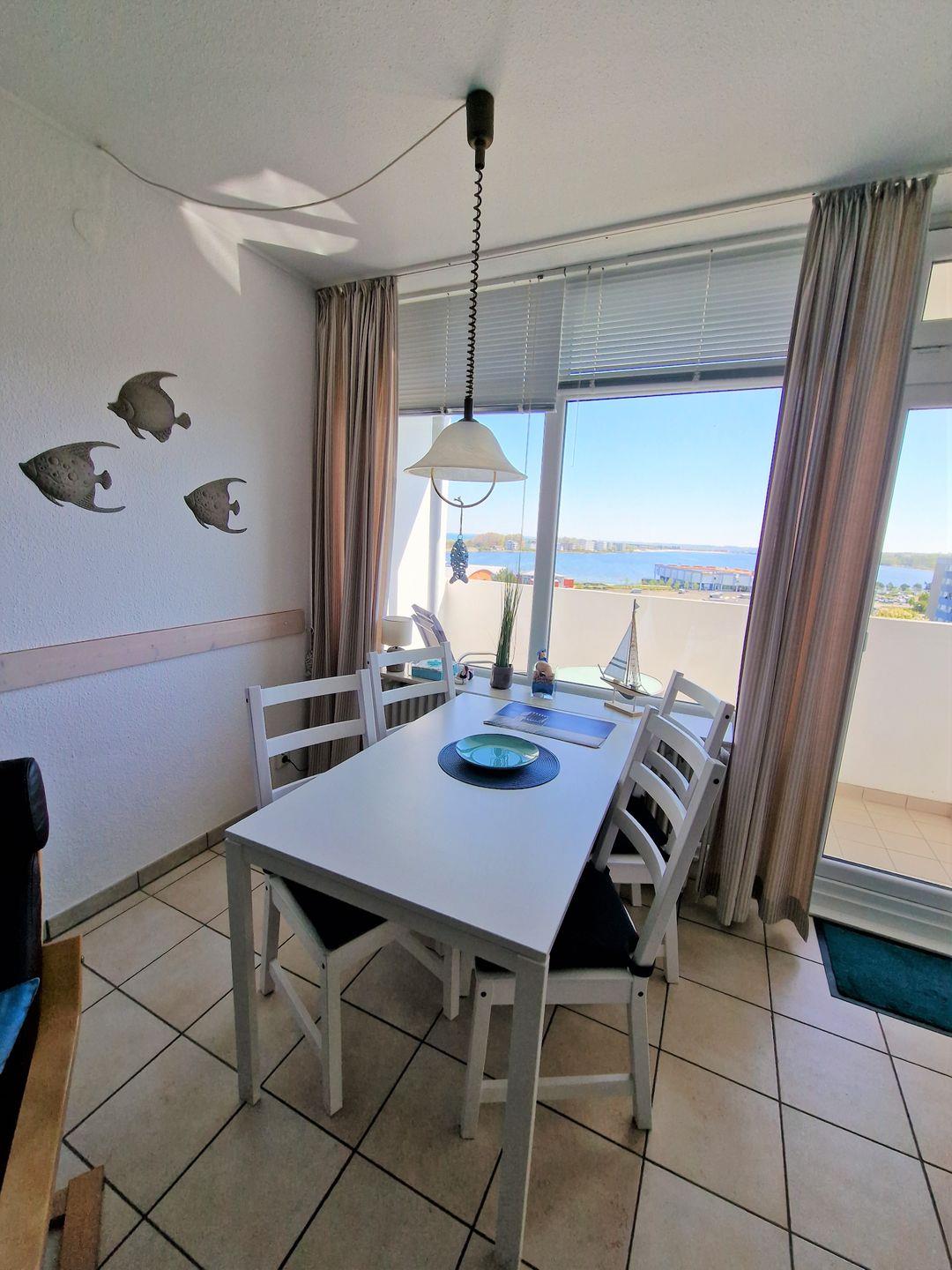 Moderne, sehr schöne und helle Ferienwohnung in der 7. Etage mit Balkon zum Innenhof und Blick über den Binnensee Richtung Stadt Heiligenhafen