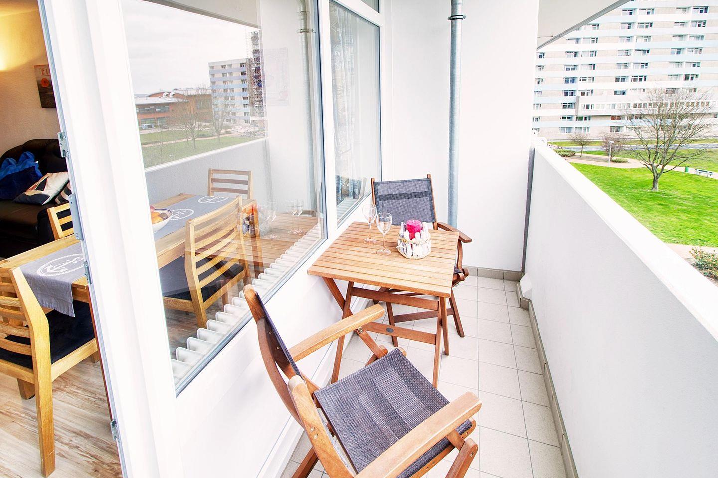 Moderne Wohnung in Heiligenhafen mit Balkon und Blick auf den Binnensee, ideal für Familien und erholsame Tage.