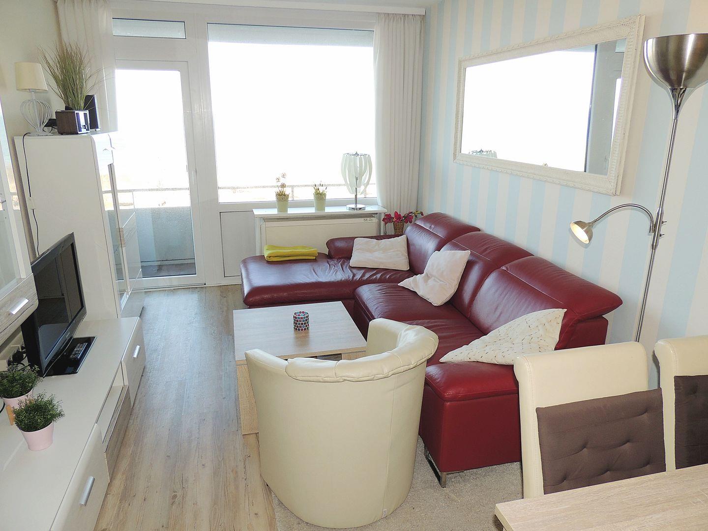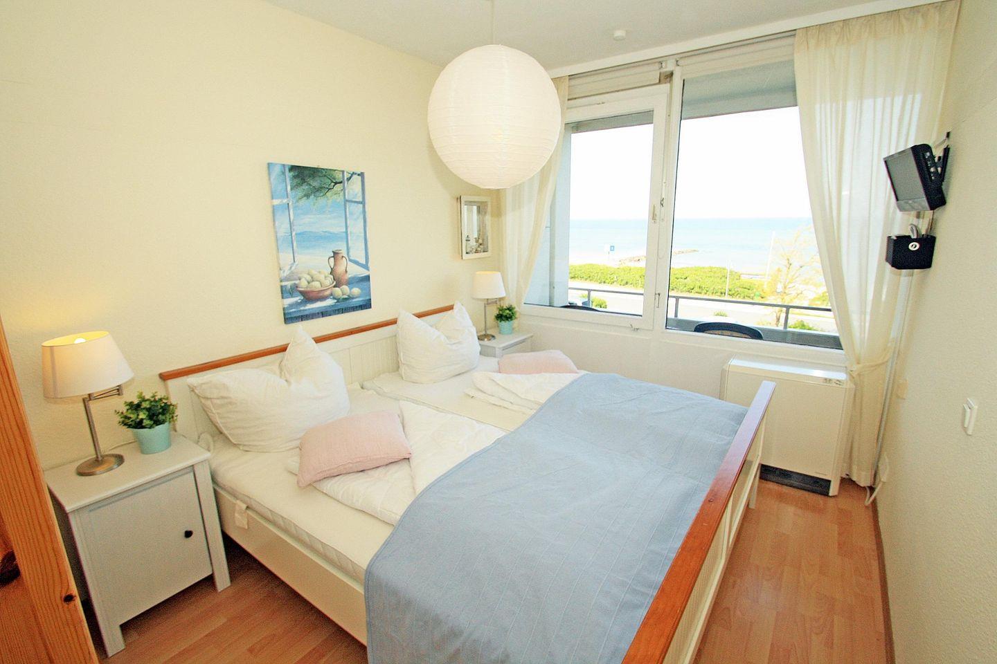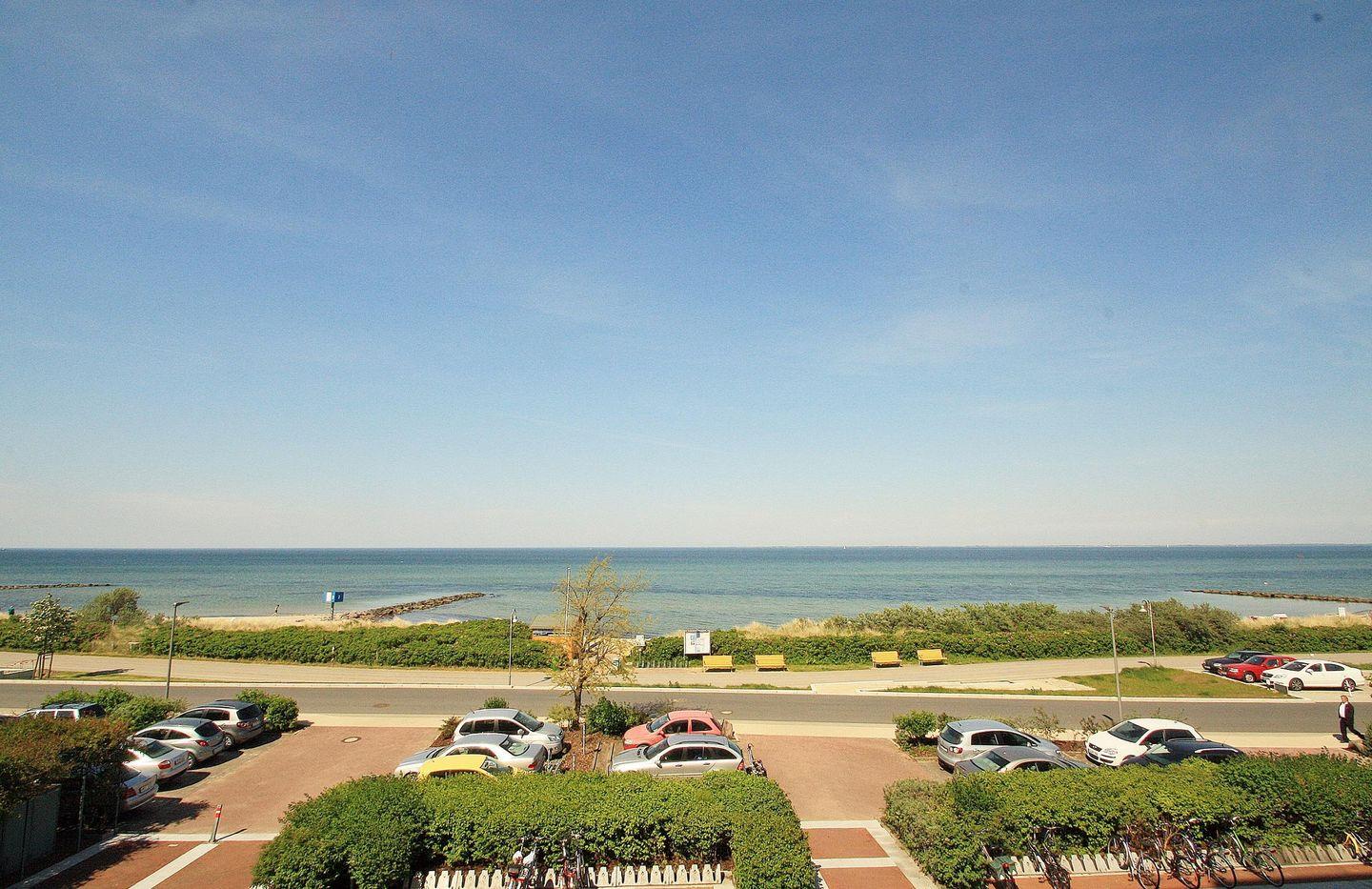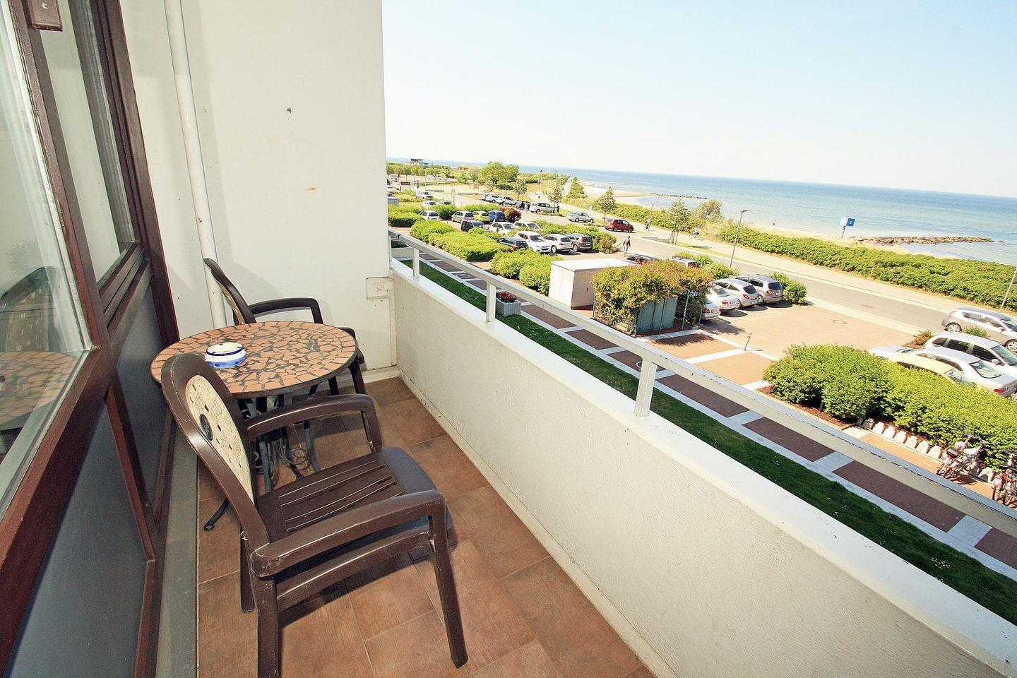 Helle Wohnung mit Balkon und direktem Ostseeblick in Heiligenhafen, ideal für erholsame Tage am Meer.