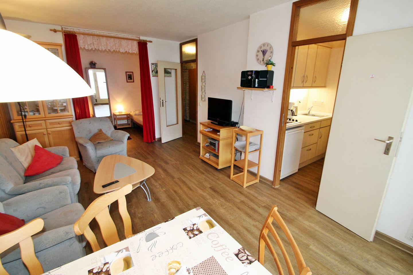 Freundlich eingerichtete Ferienwohnung mit pflegeleichtem Vinylboden in der 6. Etage und Balkon zur Ostseite.