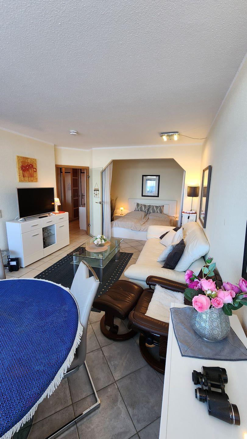 Stilvolle, gemütliche Ferienwohnung in der 8. Etage mit Balkon zur Nordseite und tollem Blick über die Ostsee.