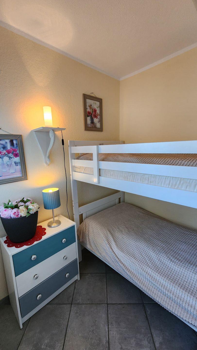 In dem separaten Kinderzimmer (getrennt durch eine Tür zum Wohnraum) befindet sich ein Etagenbett (je 90x190 cm).