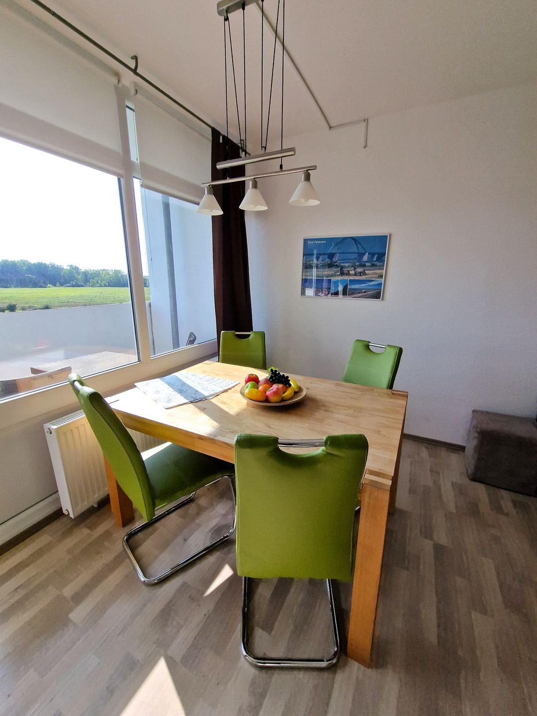 Im schönen Wohnraum kann die gemütliche Couchecke mit Flachbild-TV sowie DVD-Player und Radio mit CD und die Sitzecke am Fenster mit 4 Personen genutzt werden.