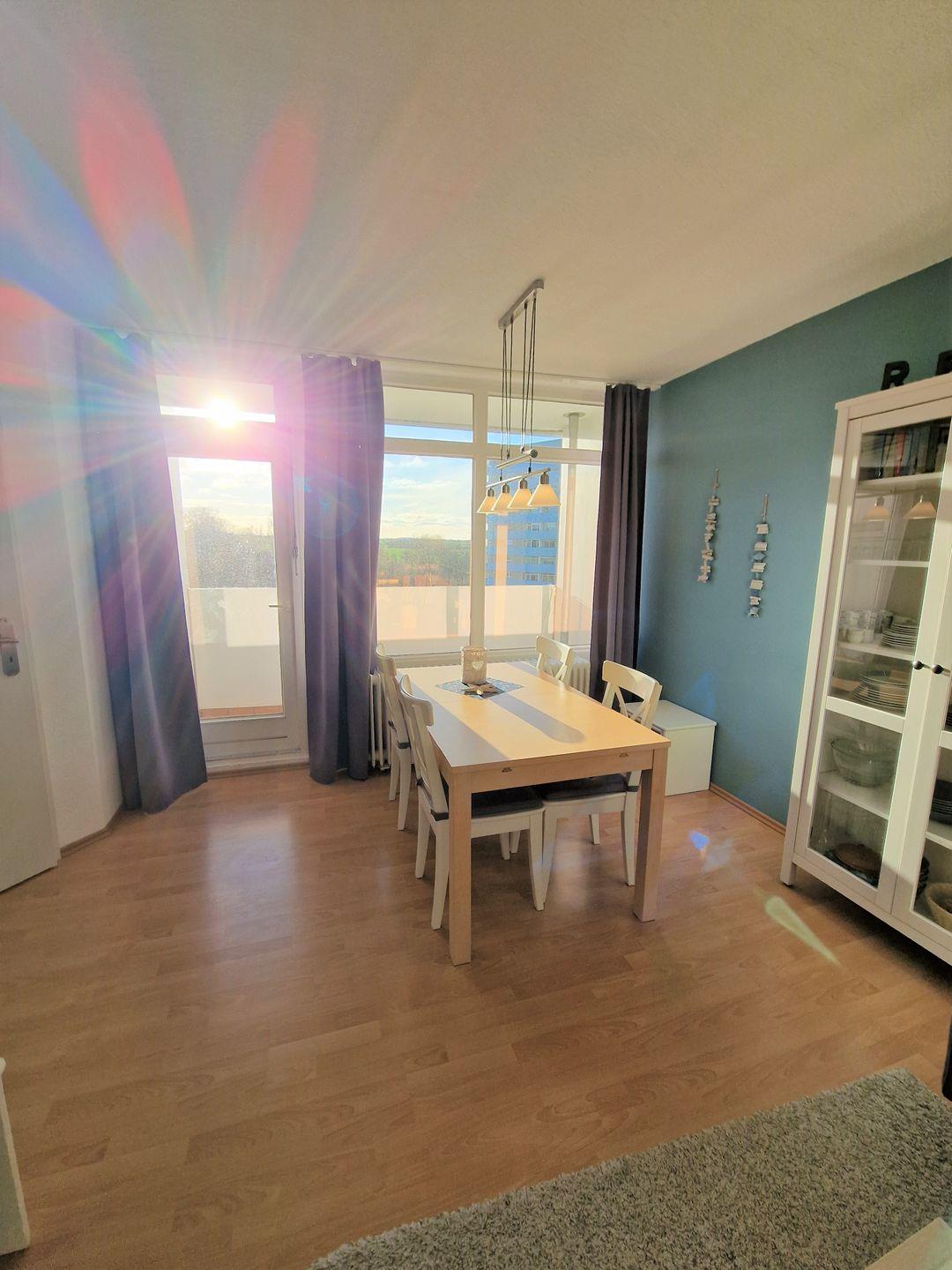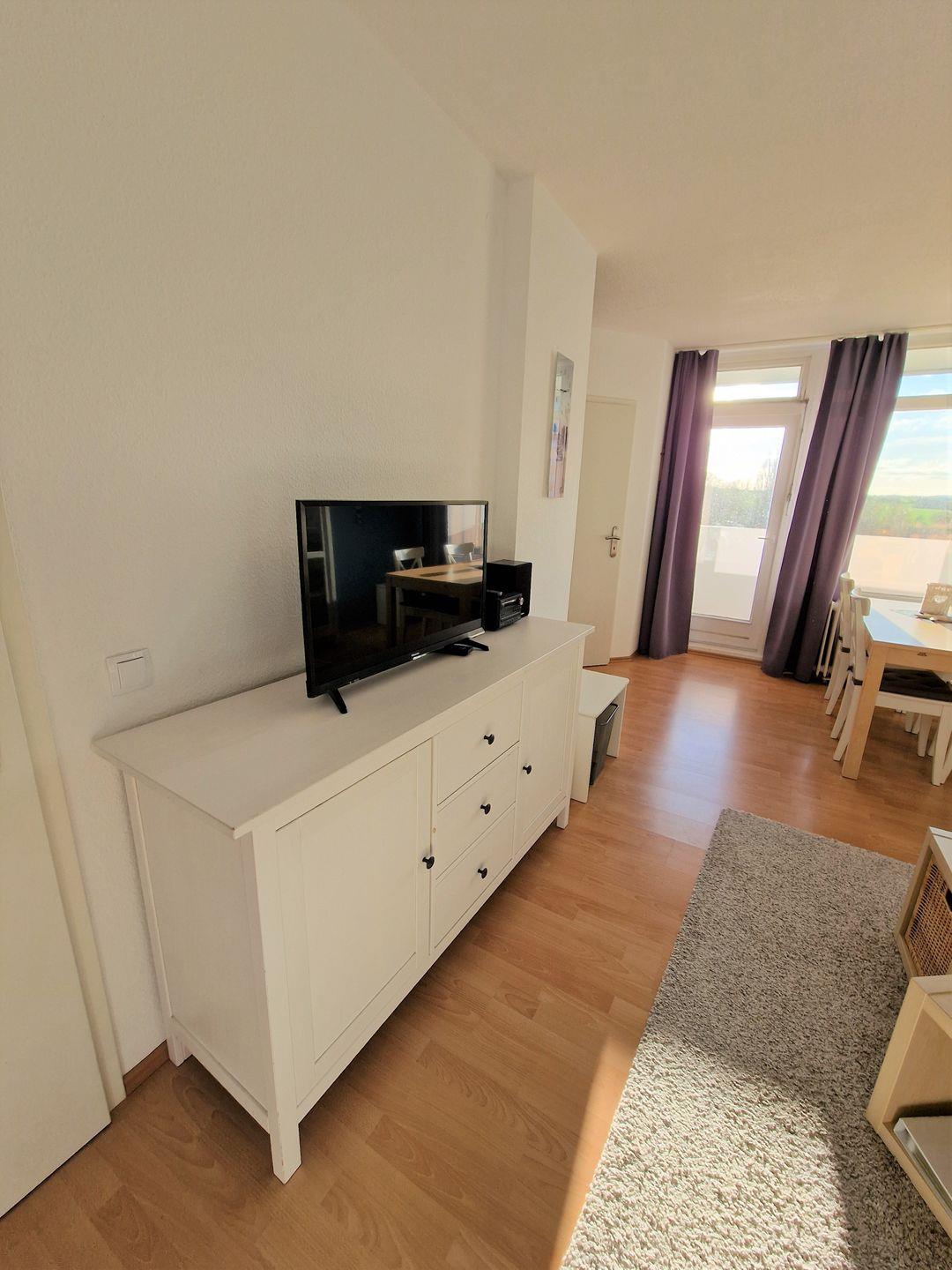 Ferienwohnung in der 3. Etage mit Balkon zur Südseite und Blick ins Grüne sowie auf die weitläufigen Felder.