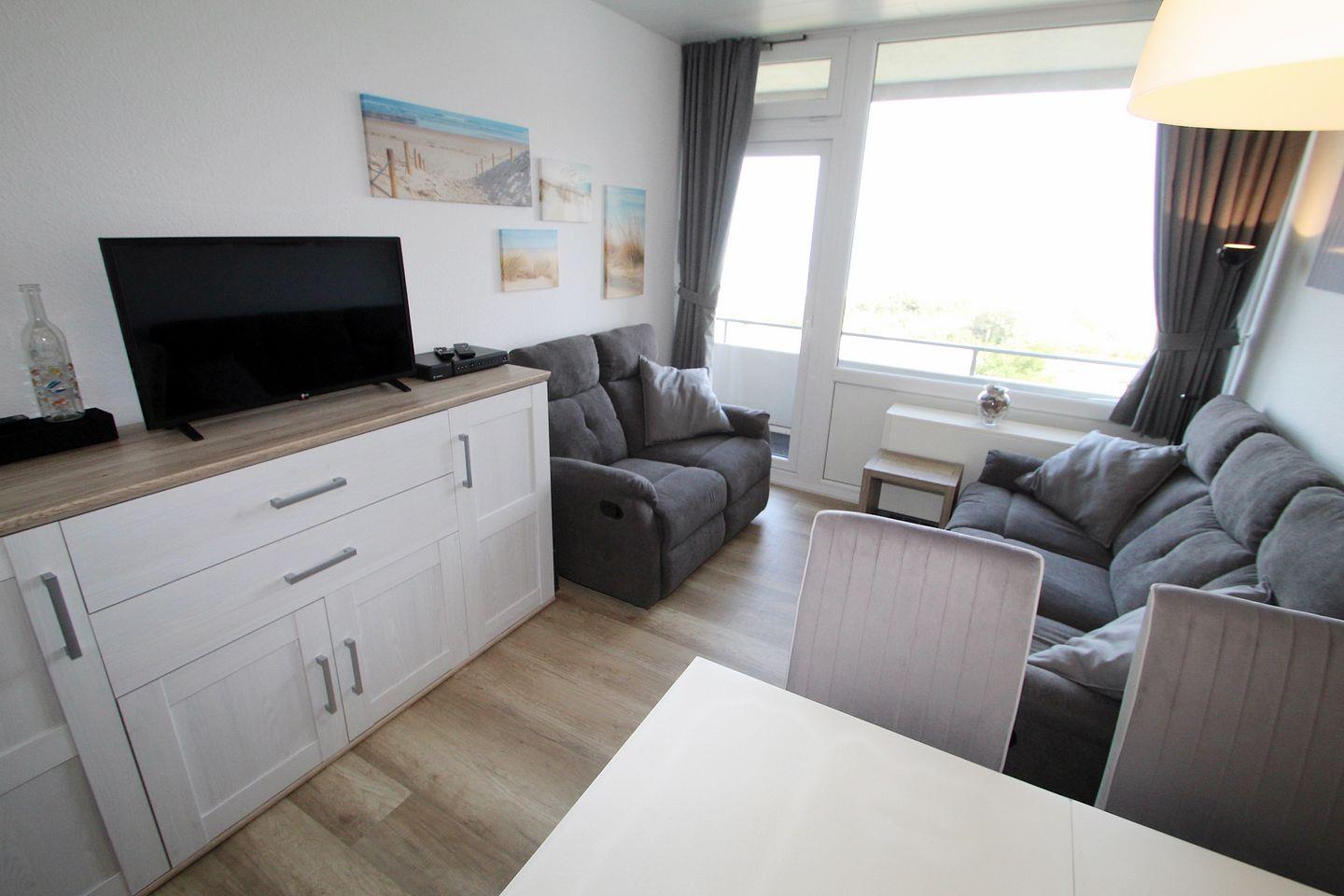 Gemütliche Ferienwohnung in Heiligenhafen mit direktem Ostseeblick und Balkon, perfekt für Familien mit Kindern.