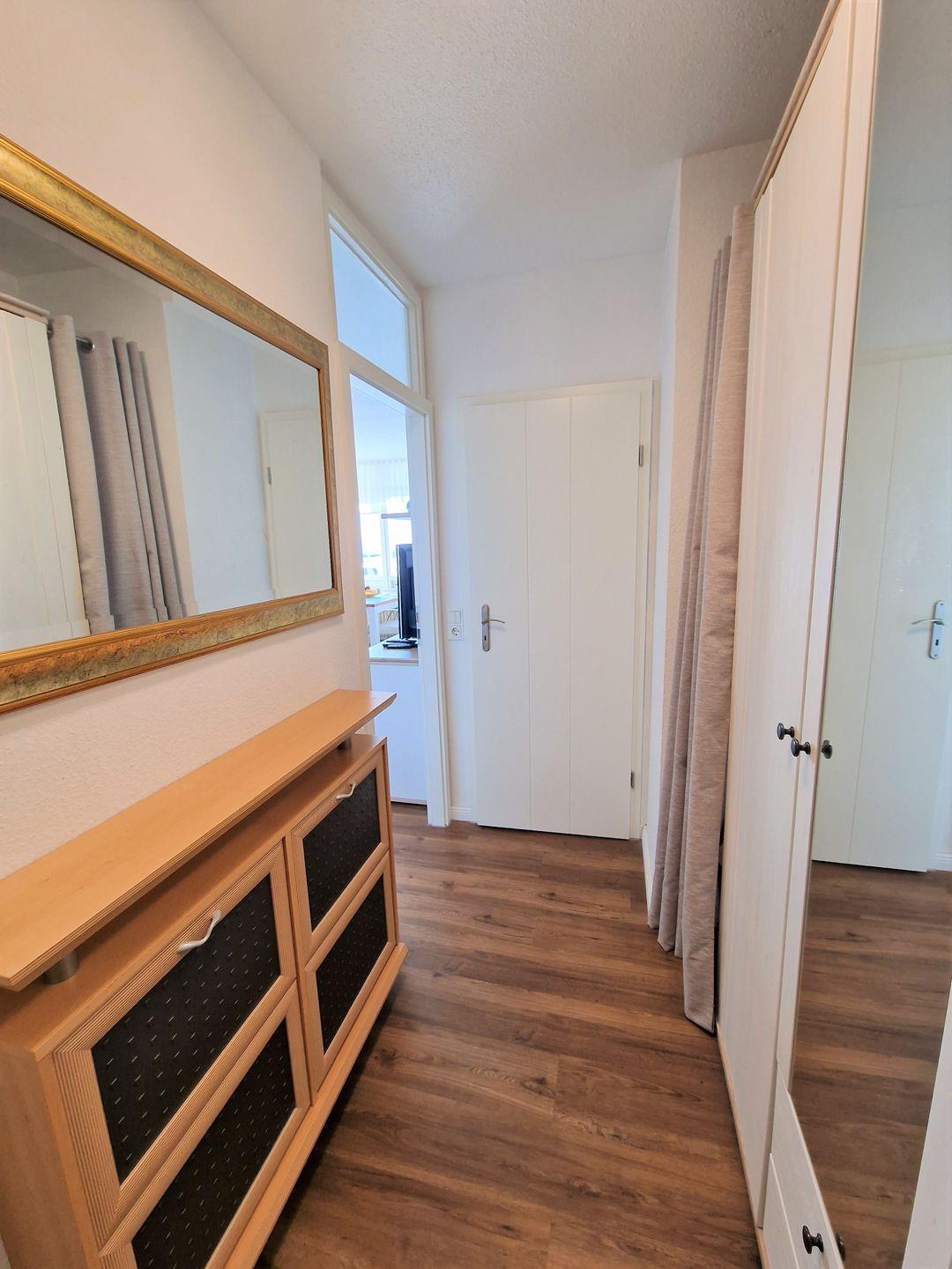 Beim öffnen der Wohnungstür, gelangen Sie in den hellen Eingangsbereich.