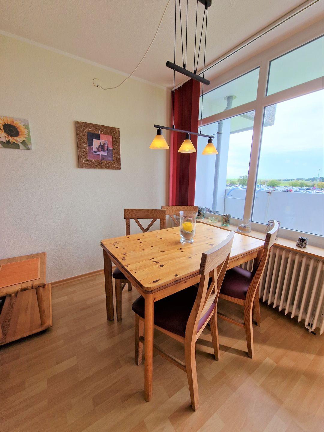 Schöne und sonnige Ferienwohnung in der 1. Etage mit Balkon zur Westseite und Blick Richtung Steilküste und Leuchtturm.