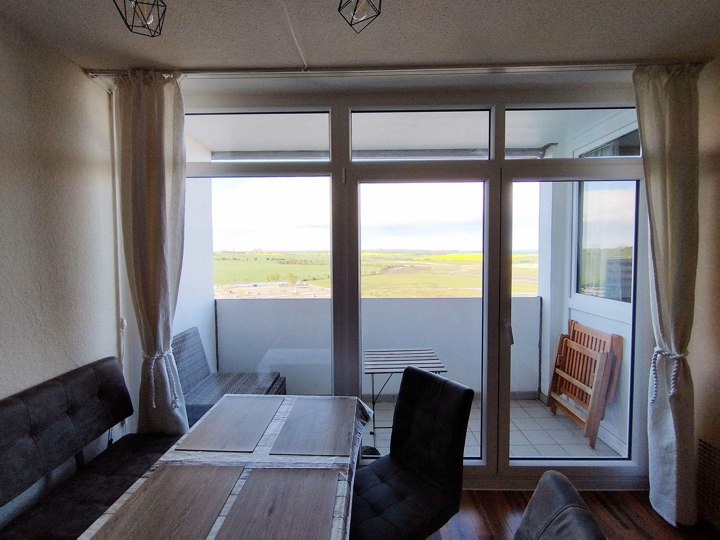 Genießen Sie vom Balkon den tollen Blick über die weiten Felder und Wiesen Heiligenhafens sowie auf die Ostsee.