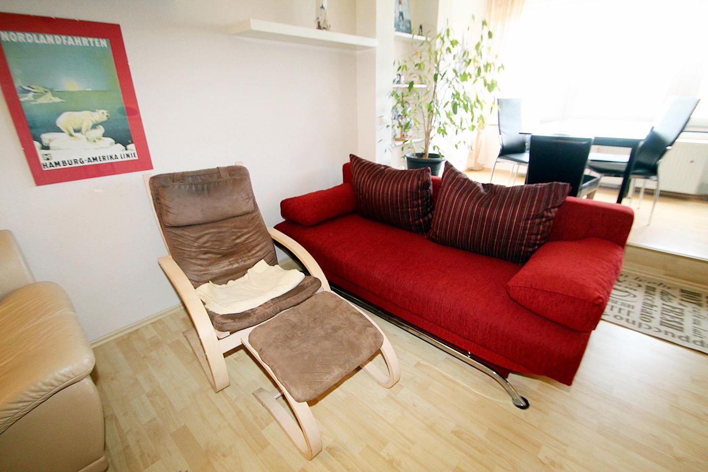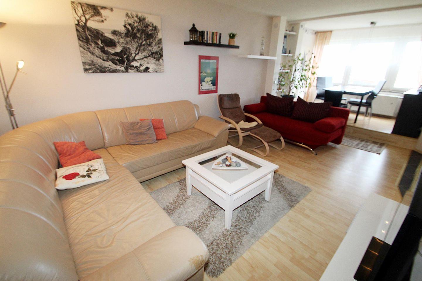 Komplett mit Laminat, neuem Mobiliar und großzügig gestaltetem Wohnzimmer.