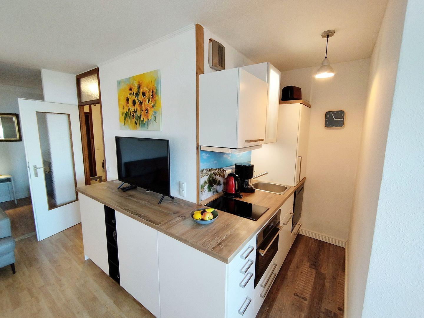 Die neue Einbauküche verfügt über ein Ceranfeld, einen Backofen mit Dampfgarer sowie über eine Spülmaschine.