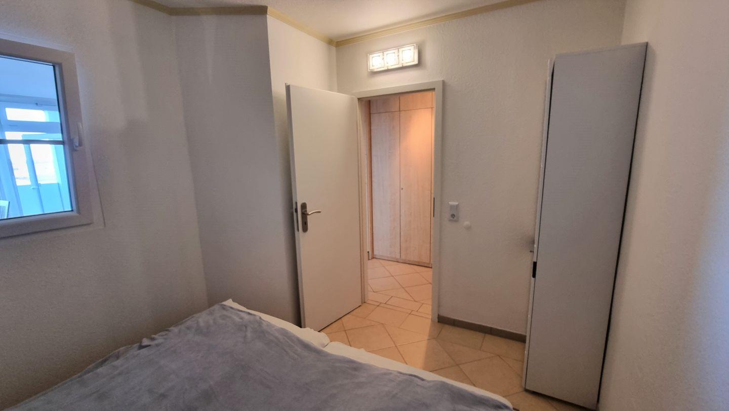 Das Feriendomizil verfügt über zwei separate Schlafzimmer mit insgesamt vier Schlafmöglichkeiten. Beide Schlafräume sind ebenfalls gefliest und bieten ausreichend Stauraum durch Kommoden und eine Garderobe. Das Badezimmer ist mit einer Dusche mit Wanne, Waschbecken, Spiegel und WC ausgestattet und liefert warmes Wasser. Ein Staubsauger steht zur Verfügung. Die Zentralheizung sorgt unabhängig von der Jahreszeit für angenehme Temperaturen in allen Räumen.