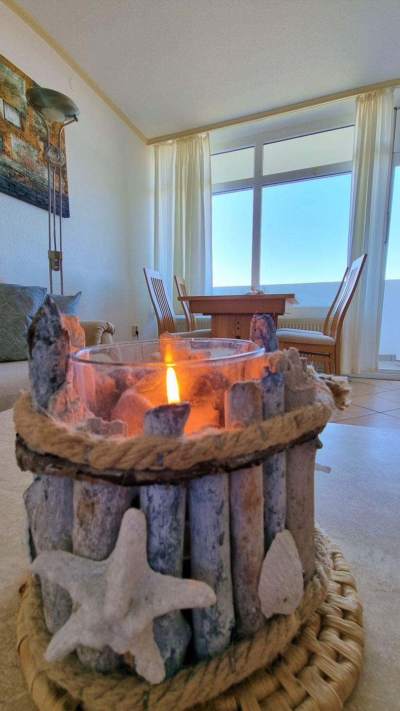 Hell und freundlich ausgestattete Wohnung für 4 Personen in der 6. Etage mit Balkon zur Westseite und traumhaft schönem Blick über das Naturschutzgebiet in Richtung Leuchtturm/Ostsee.