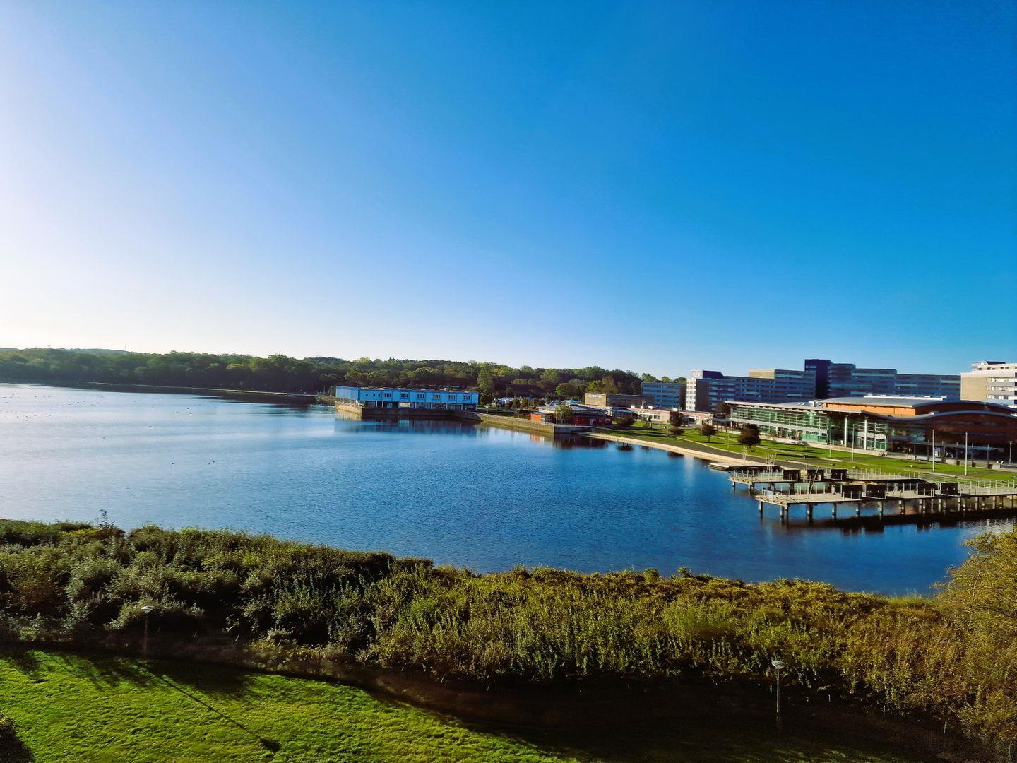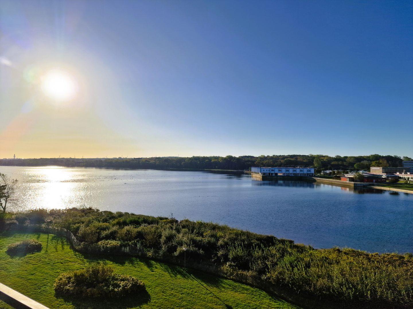Helle und modern eingerichtete Ferienwohnung in der 4. Etage mit Balkon zur Südseite und schönem Blick über den Binnensee.