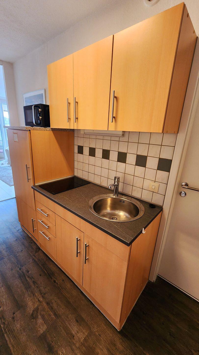 Die Wohnung umfasst einen offenen Schlafbereich, ein modernes Badezimmer mit Dusche und Badewanne sowie ein einladendes Wohnzimmer mit einer komfortablen Sofaecke, die zum Entspannen einlädt. Zur Ausstattung gehört eine voll ausgestattete Kochnische, in der Sie leckere Gerichte zubereiten können. Genießen Sie Ihre Mahlzeiten im angenehmen Essbereich oder auf dem überdachten Balkon, von dem aus Sie den außergewöhnlich guten Seeblick bewundern können.