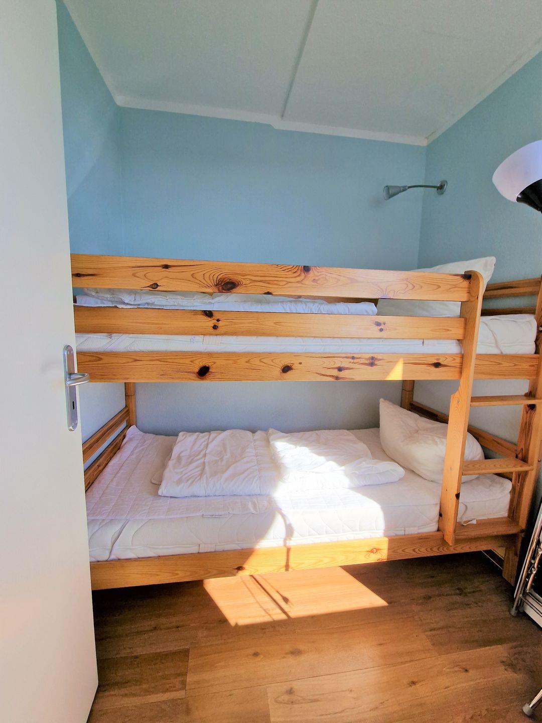 Das separate Kinderzimmer ( vom Wohnraum mit einer Tür getrennt) ist mit Etagenbett ( 2 x 90*200) ausgestattet (separates Fenster zum öffnen).