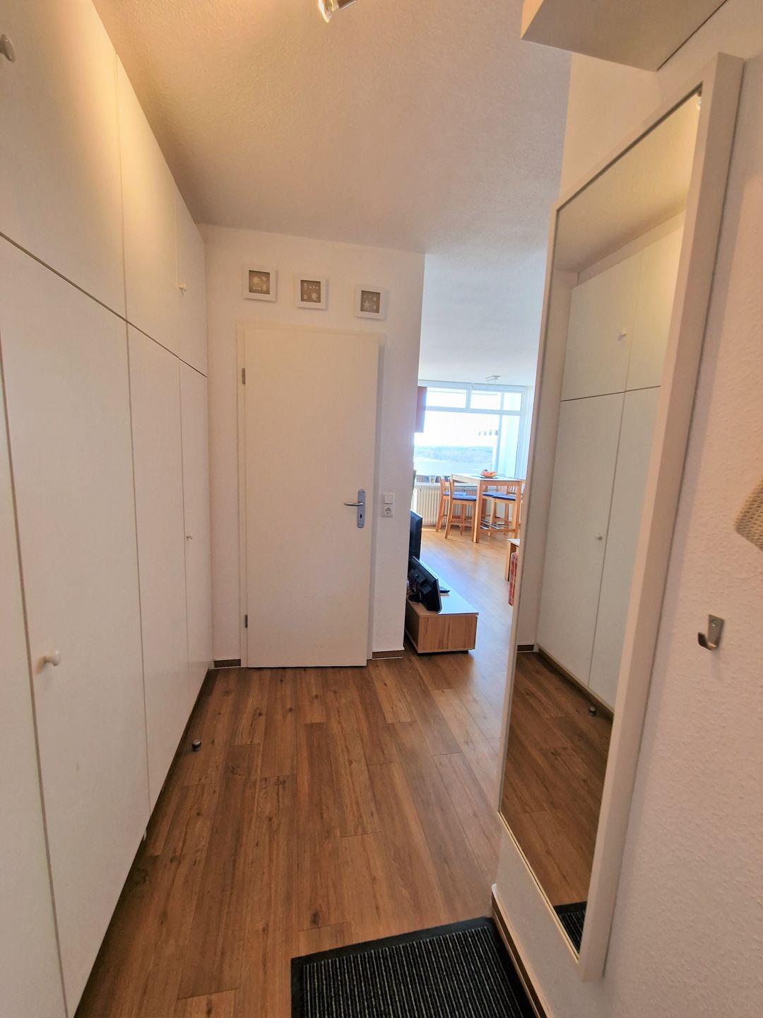 Über den hellen Eingangsbereich, mit einem großen Einbauschrank, für Ihre Ablage gehen Sie am Badezimmer vorbei.