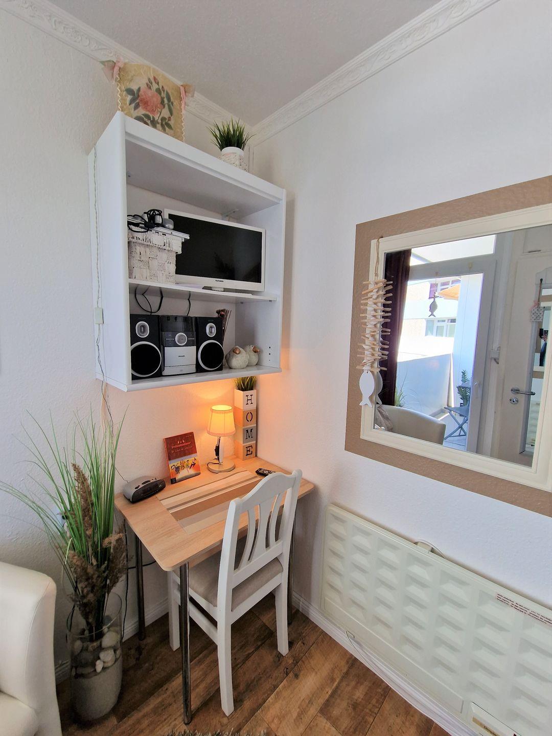 Der Wohnraum ist mit einer Couch in L-Form, großem LCD-TV (~108cm), Blu Ray-Player und Micro-Musikanlage mit CD ausgestattet.