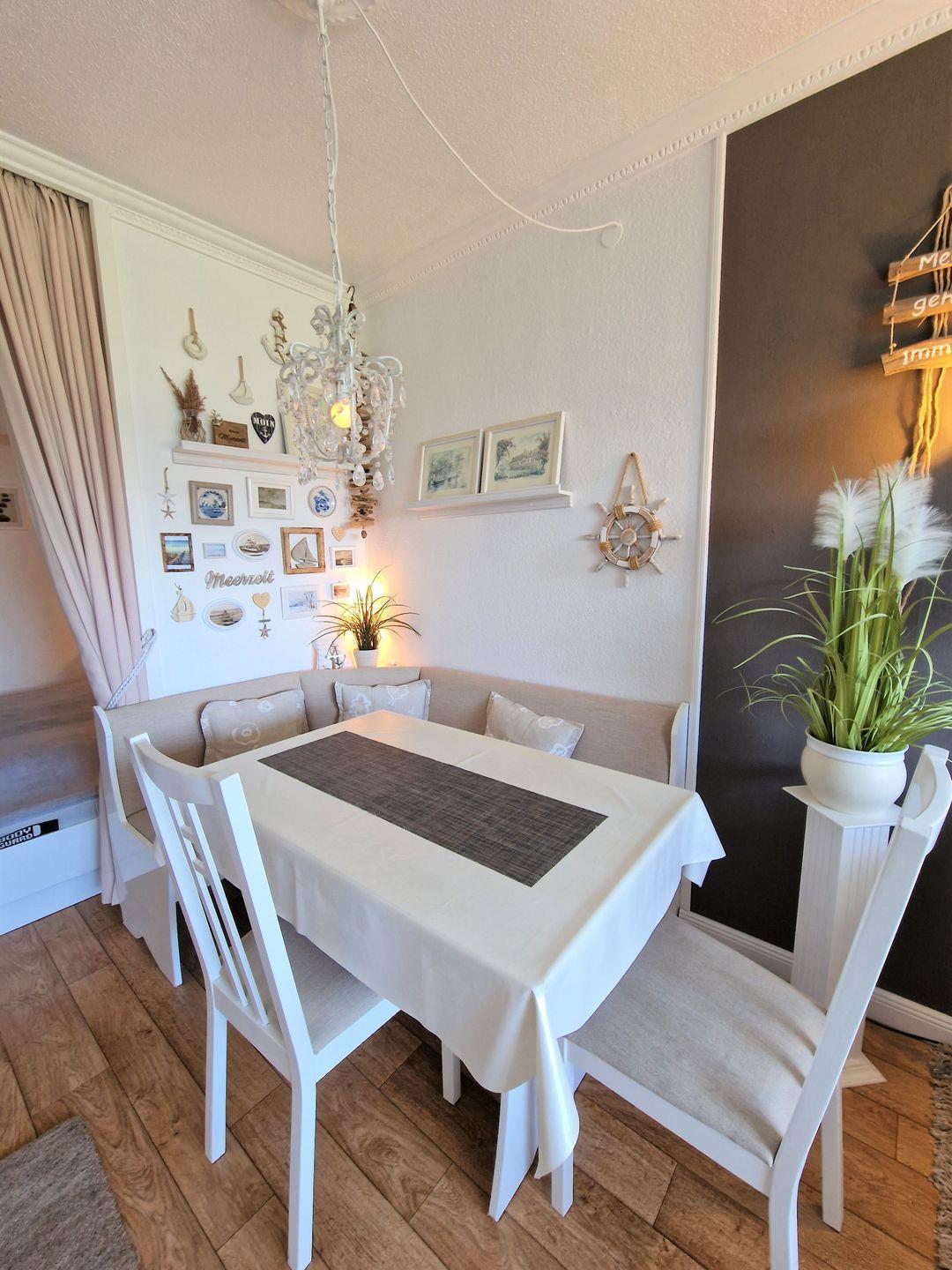 Die gemütliche Essecke befindet sich im hinteren Bereich des Wohnraumes.