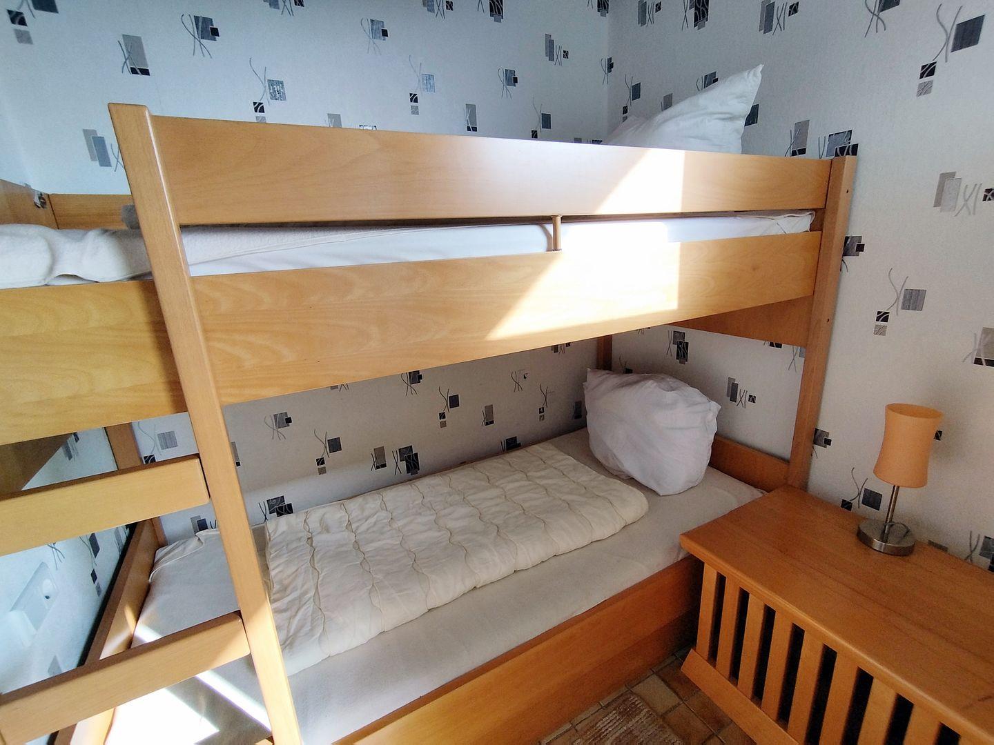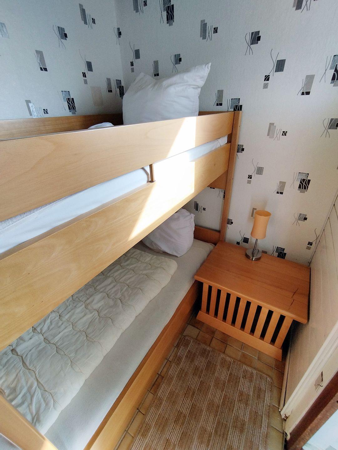 Im separaten Kinderzimmer steht ein Etagenbett aus Holz.